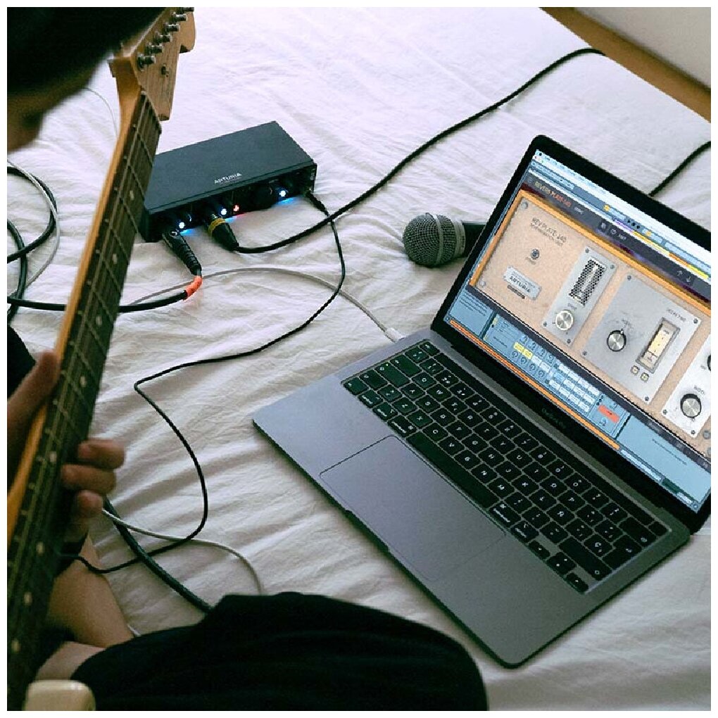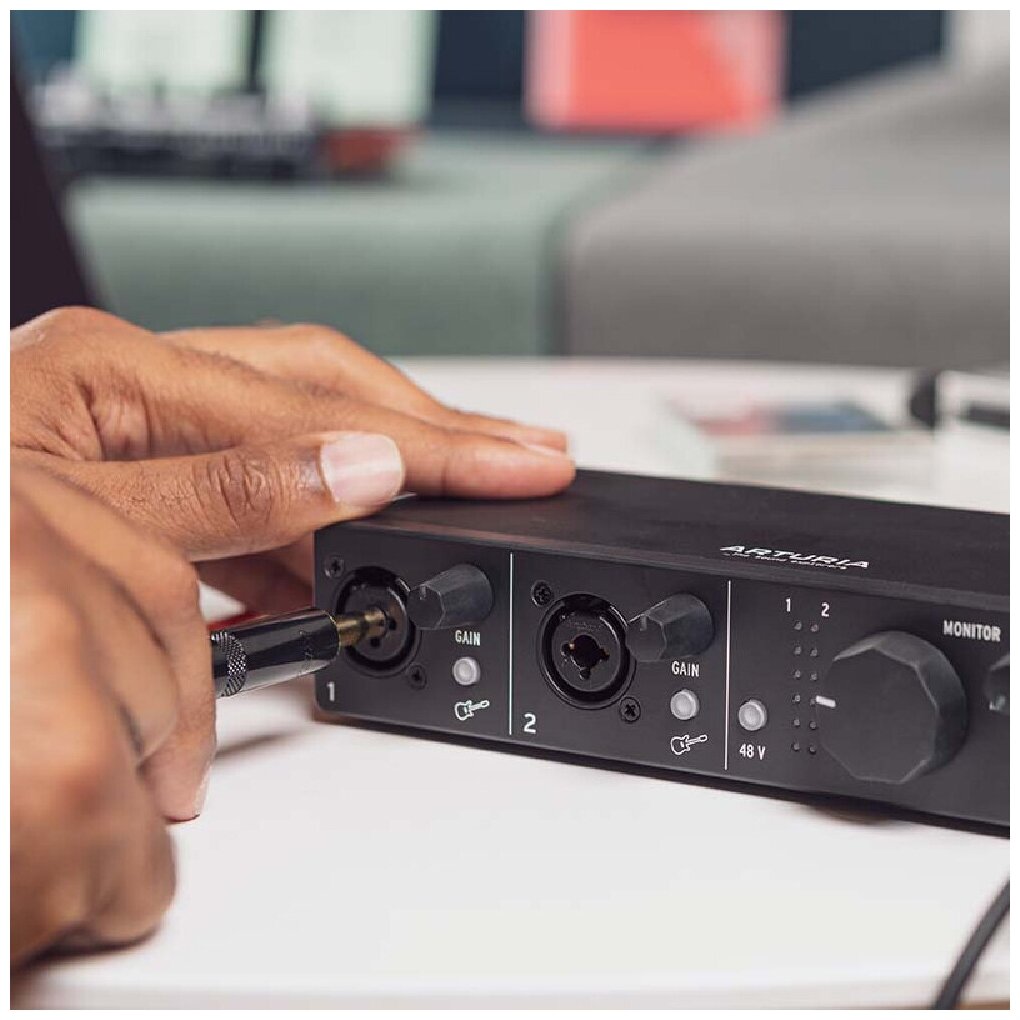 Arturia MiniFuse 2 - компактный 2-канальный USB-C аудиоинтерфейс. Комбинированные входы позволяет легко подключать кабели с разъемами XLR или 1/4 дюйма. Подключите к компьютеру с помощью быстрой и компактной совместимости с USB-C. Версия MiniFuse 2 иммет на своем борту MIDI вход/выход, к дополнительному разъему USB-концентратора можно подключить различные устройства. MiniFuse может похвастаться динамическим диапазоном 110 дБ и лучшим в своем классе эквивалентным входным шумом -129 дБ. Каждая ваша запись будет звучать невероятно, с богатой динамикой, чистым бесшумным сигналом и студийным качеством. MiniFuse работает с ПК и Mac. С помощью приложения MiniFuse Control Center вы можете отслеживать его входы, выходы, настройки и обновления прошивки в одном месте. Интерфейс работает от шины USB-C. Интерфейс имеет виртуальный канал обратной связи, который отлично подходит для записи телефонных звонков или игрового звука. В комплекте также поставляется пакет ПО, включающий Ableton Live Lite, Arturia Analog Lab Intro, Arturia FX, Native Instruments Guitar Rig 6 LE и бесплатную трехмесячную подписку на Auto-Tune Unlimited и Splice. Особенности: аудиоинтерфейс 2 входа / 2 выхода; поддержка 24 бит / 192 кГц; комбинированный вход XLR Mic / Inst / Line с фантомным питанием 48 В; переключатель прямого мониторинга; выходная мощность на наушники: 137 мВт при 32 Ом; дополнительный USB-A порт; вход/выход MIDI; Комплектация: аудиоинтерфейс; кабель USB-A - USB-C; ПО в комплекте: Ableton Live Lite, Analog Lab Intro, Arturia FX, Native Instruments GUITAR RIG 6 LE, Auto-Tune Unlimited 3-months free subscription, Splice Creator Plan 3-months free subscription; документация.