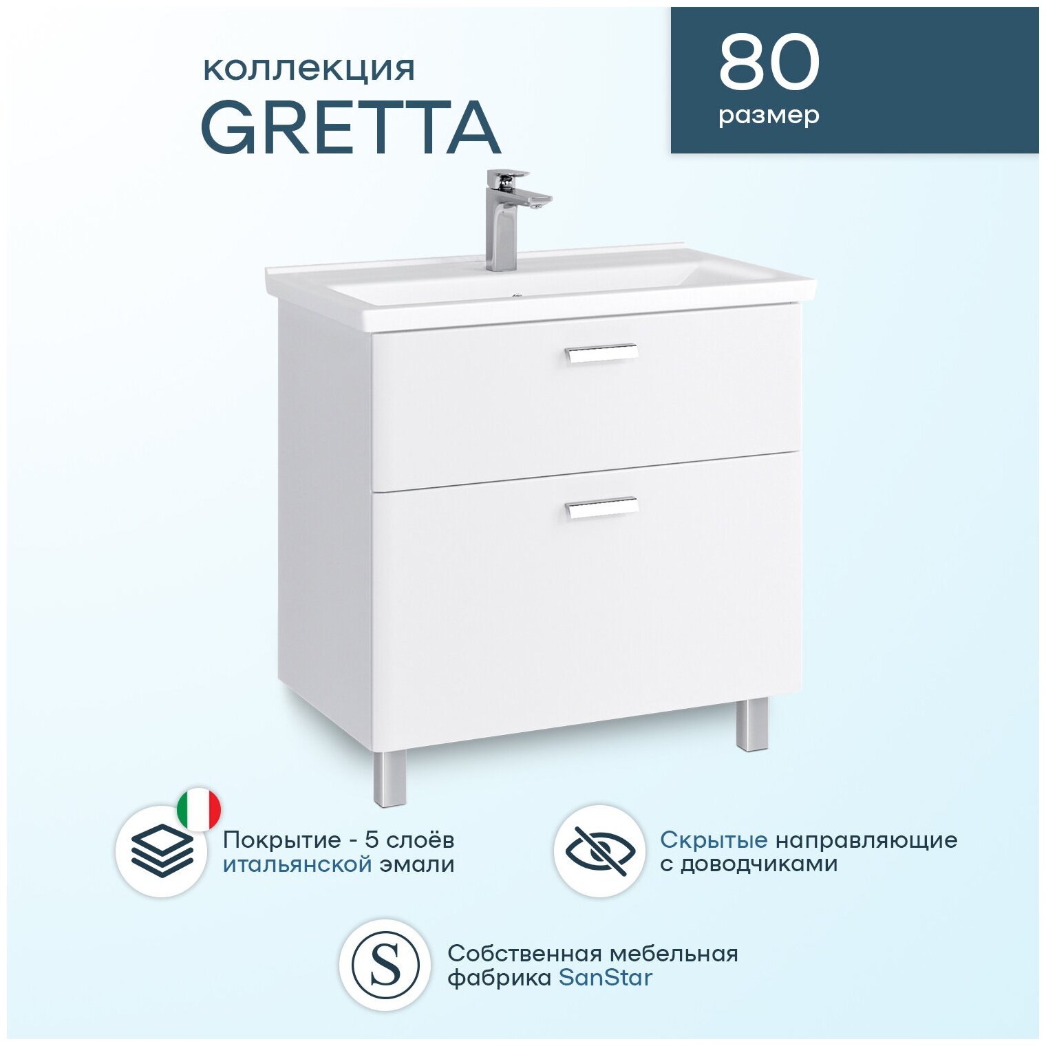 Тумба с раковиной SanStar напольная (раковина Миранда 80) Gretta 80