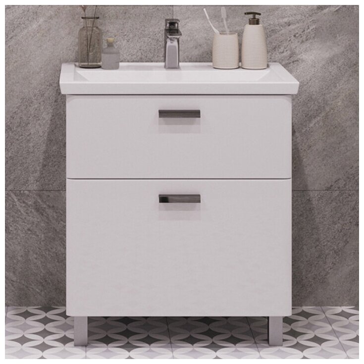 Тумба с раковиной SanStar напольная (раковина Миранда 80) 1. Тумба, раковина, 4 ножки (2 передние хром, 2 задние пластик), крепление к стене, фурнитура, паспортСмотри также характеристики.