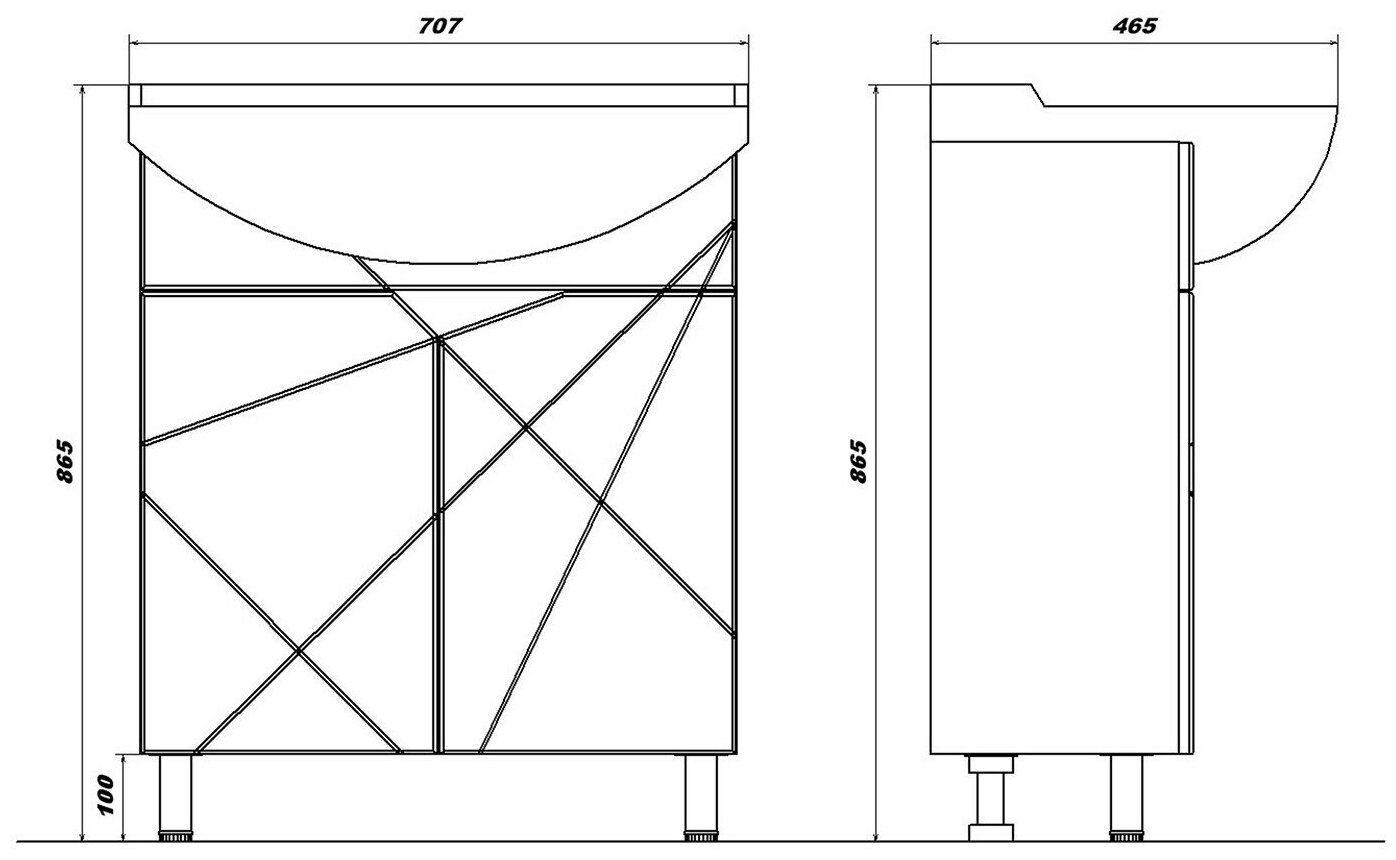 Тумба с раковиной SanStar напольная (раковина Амур 70) Каскад 70