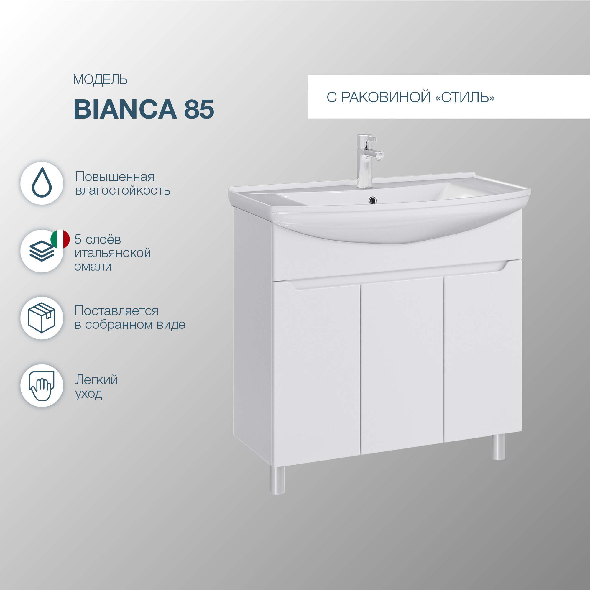 Тумба с раковиной SanStar напольная (раковина Стиль 85) Bianca 85