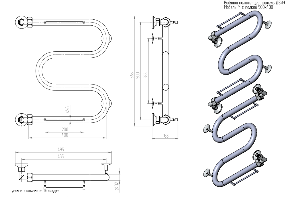Водяной полотенцесушитель Двин M 50х40 4627086043484.Полотенцесушитель, гарантийный талон (фитинги и крепежи в комплект поставки не входят).