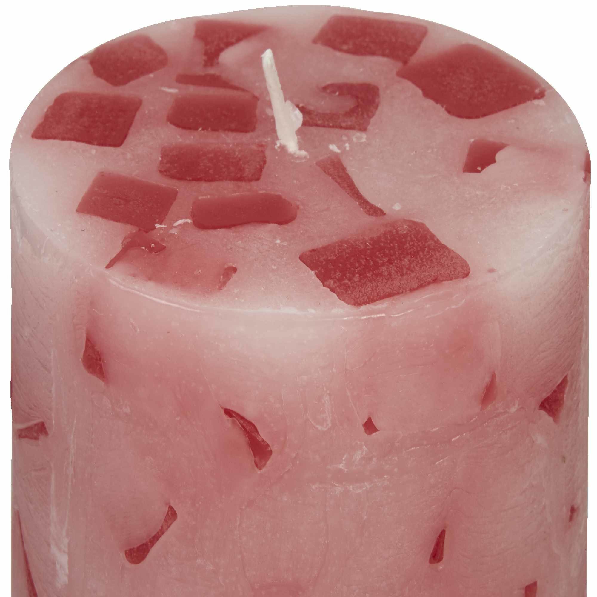 **Свеча-столбик «Меланж»** окрашена в красный цвет, используется для организации семейных вечеров и свиданий, может служить отличным украшением, приятным дополнением для вечерней ванны. Свеча с ароматом яблока и корицы позволяет создать ощущение праздника и уюта, настраивает на приятное времяпровождение, расслабление и отдых.