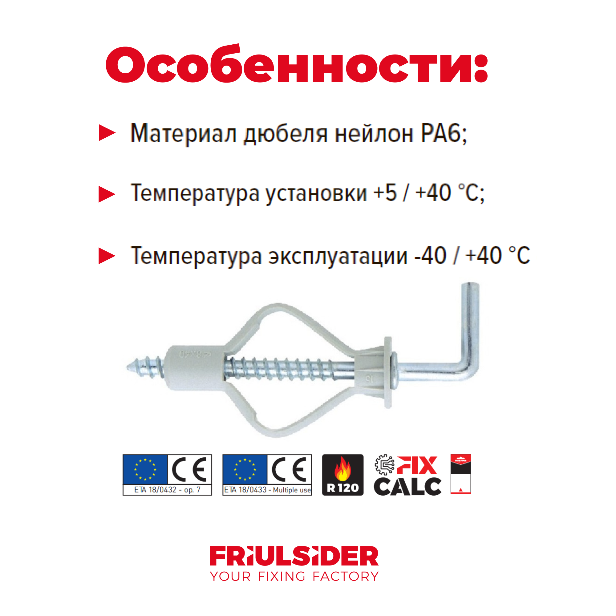 | Тип продукта | Дюбель для гипсокартона |