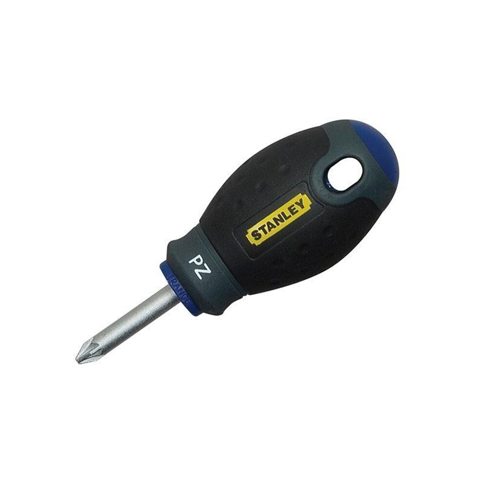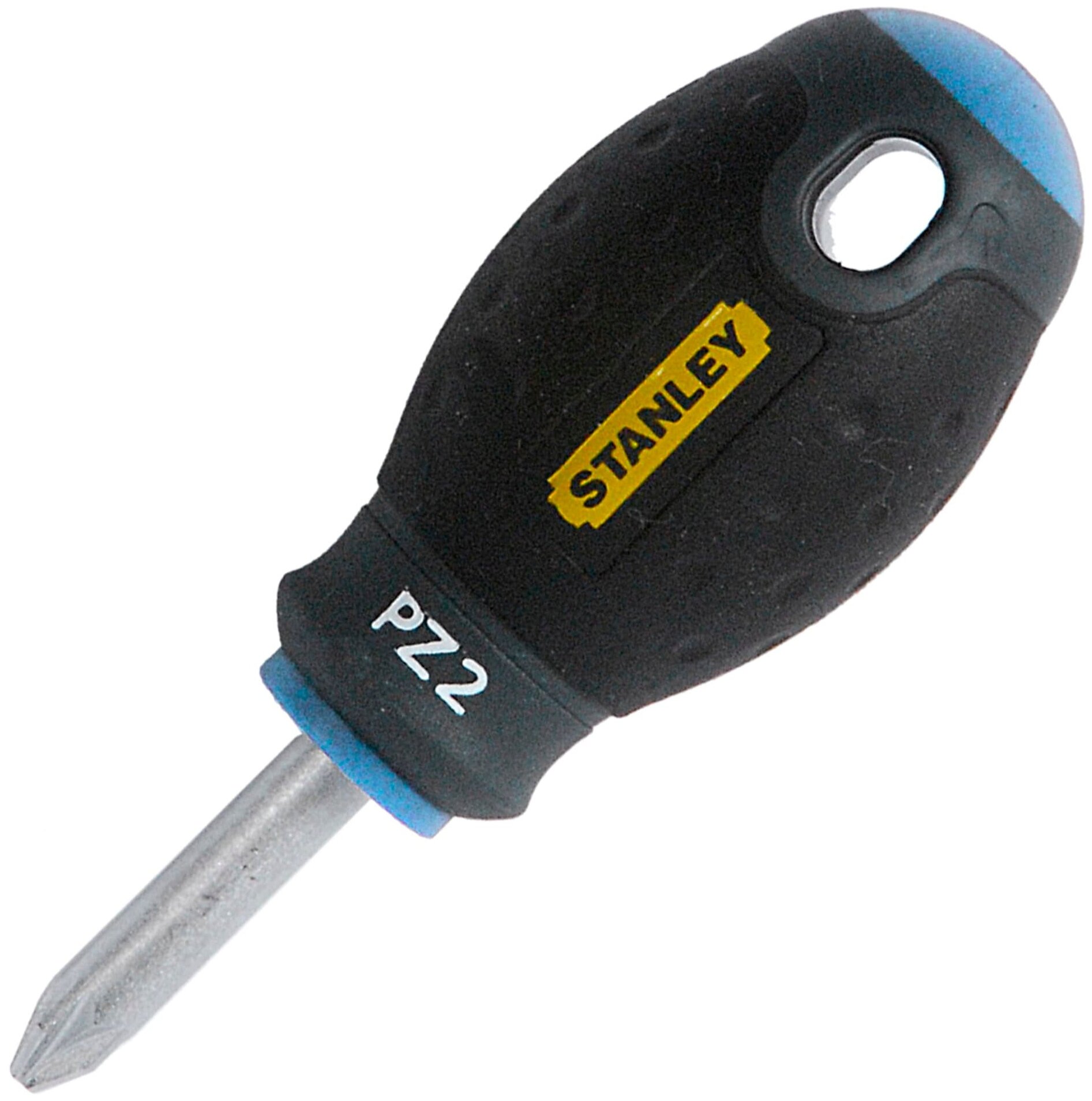 **Отвертка Stanley Fatmax** позволяет закручивать крепежные элементы с крестообразной формой шлица размером PZ2. Ручка изготовлена из двухкомпонентного пластика, дополненного прорезиненными вставками. Они исключают скольжение инструмента в ладони.