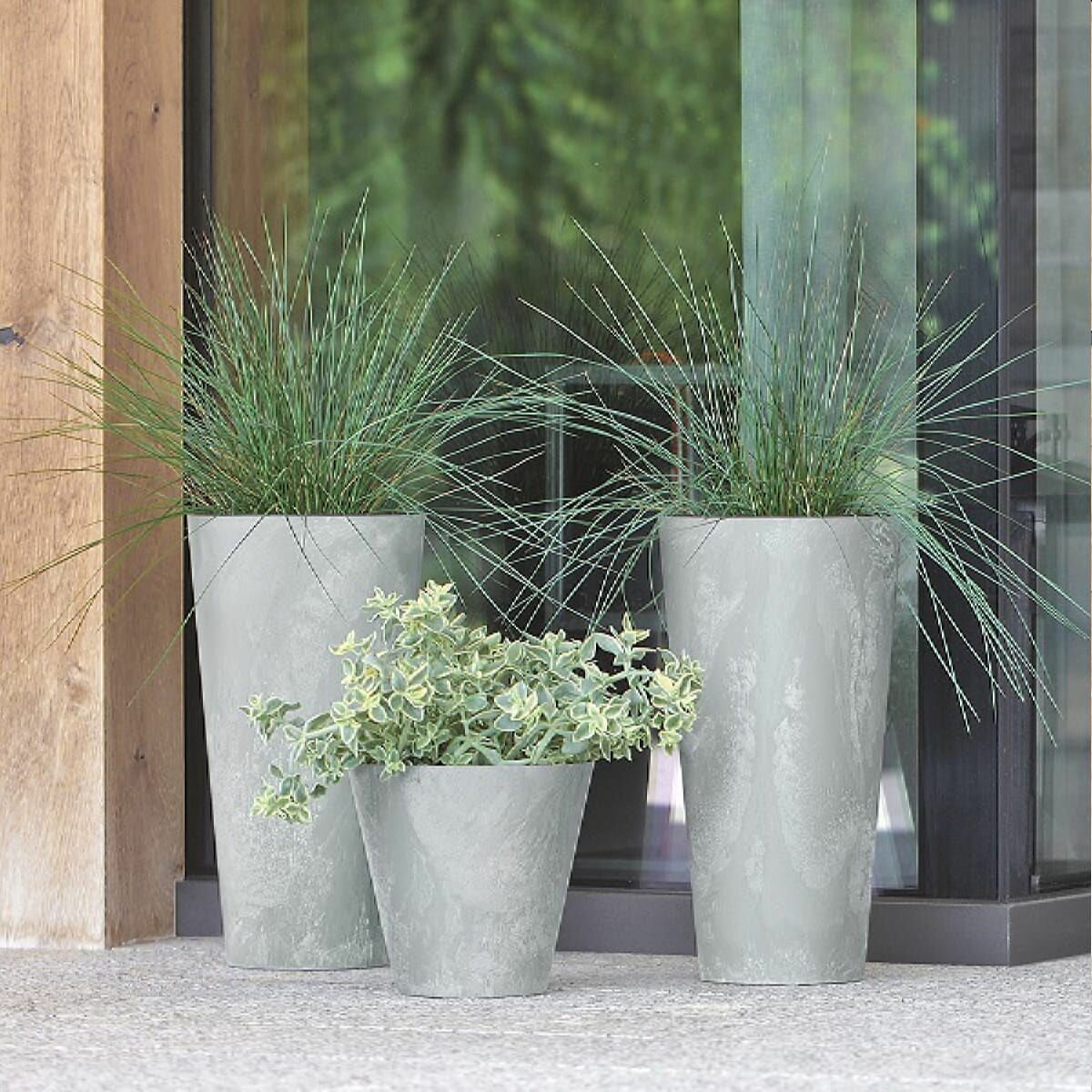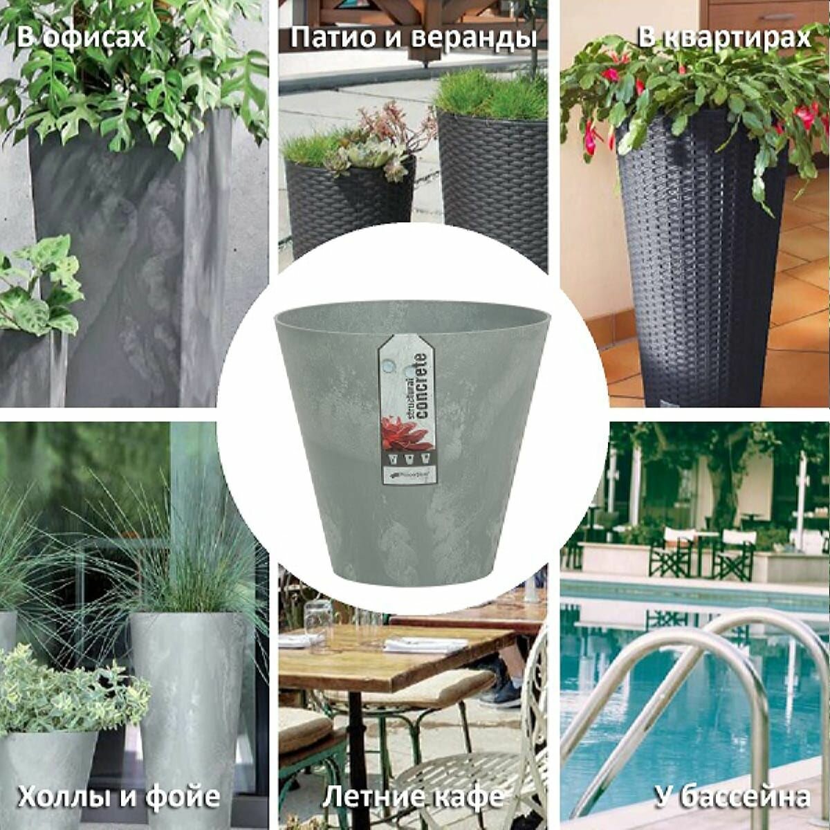 **Кашпо для цветов Prosperplast ** выполнено в лаконичном дизайне. Визуально напоминает вазу, изготовленную из цемента. В комплекте идет поддон для сбора воды.