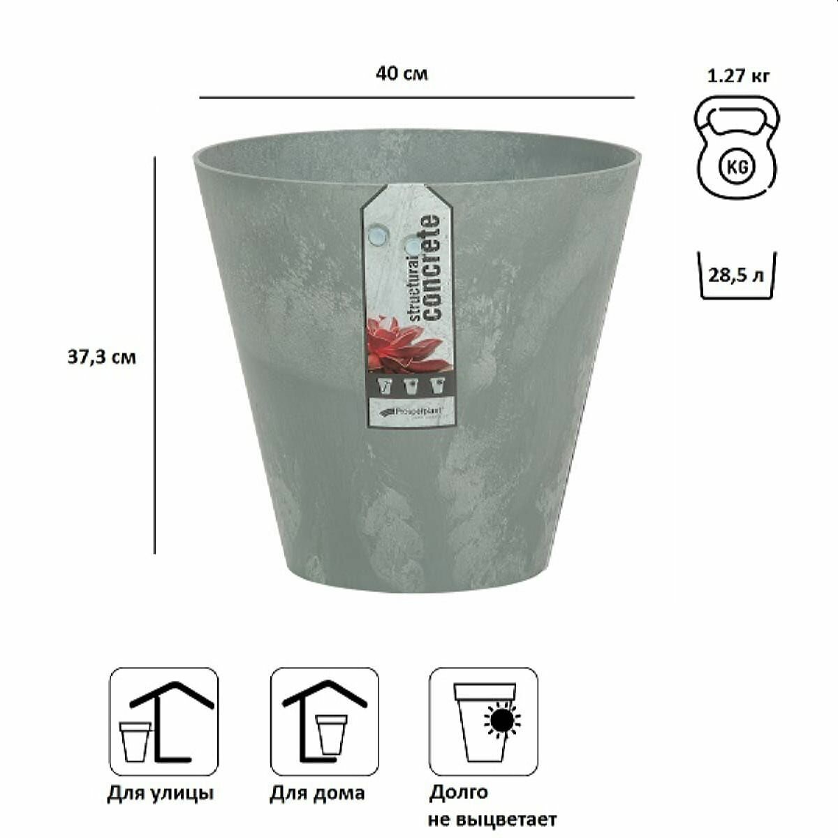 Кашпо для цветов Prosperplast ø40 h37.3 см v28.5 л пластик светло-серый Tubus Effect