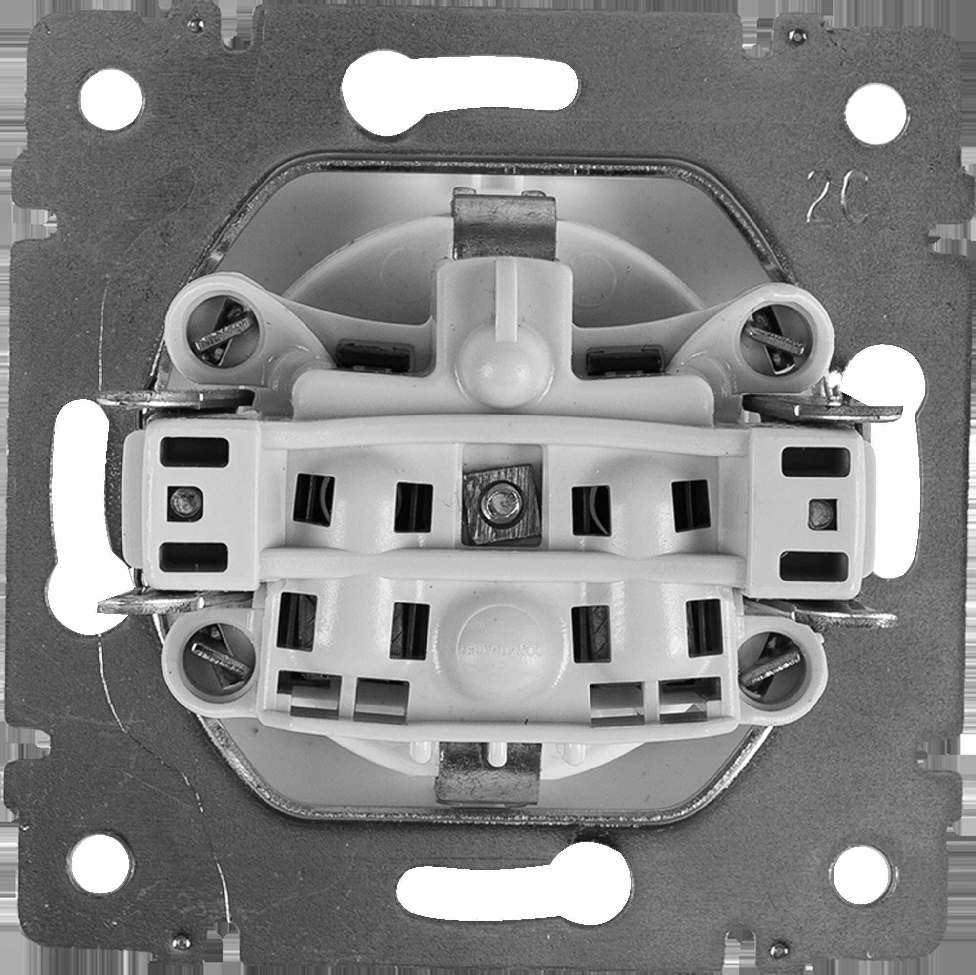 - Острые крепёжные лапки с широким углом раскрытия обеспечивают надёжную фиксацию в монтажной коробке.