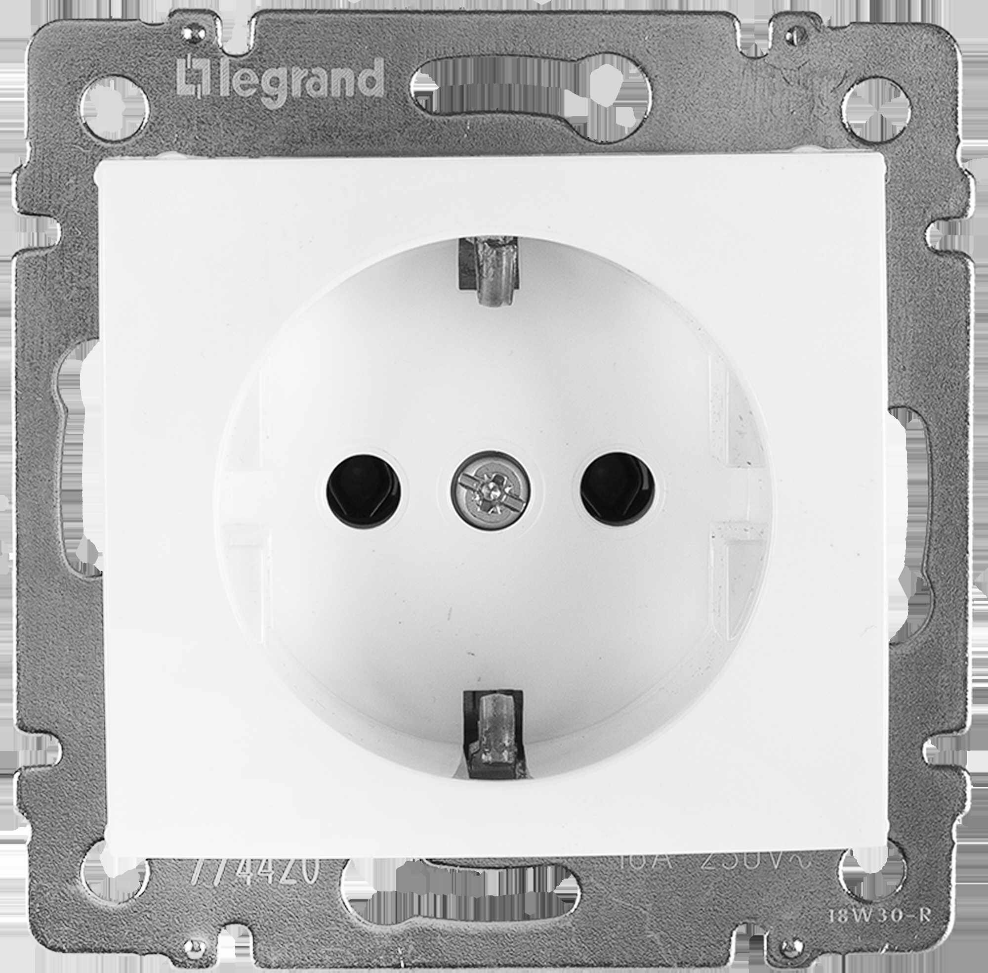 ** с заземлением с защитными шторками Legrand Valena Classic** для скрытого монтажа, цвет белый. Максимальный ток 16 А, максимальная мощность 3680 Вт. Применяется в зданиях, оборудованных для повышения безопасности проводкой с заземлением (с защитным проводником). Рекомендуются к применению в помещениях с детьми.Шторки осуществляют защитную функцию путём ограничения доступа к токоведущим контактам. Доступ открывается только при подключении вилки.