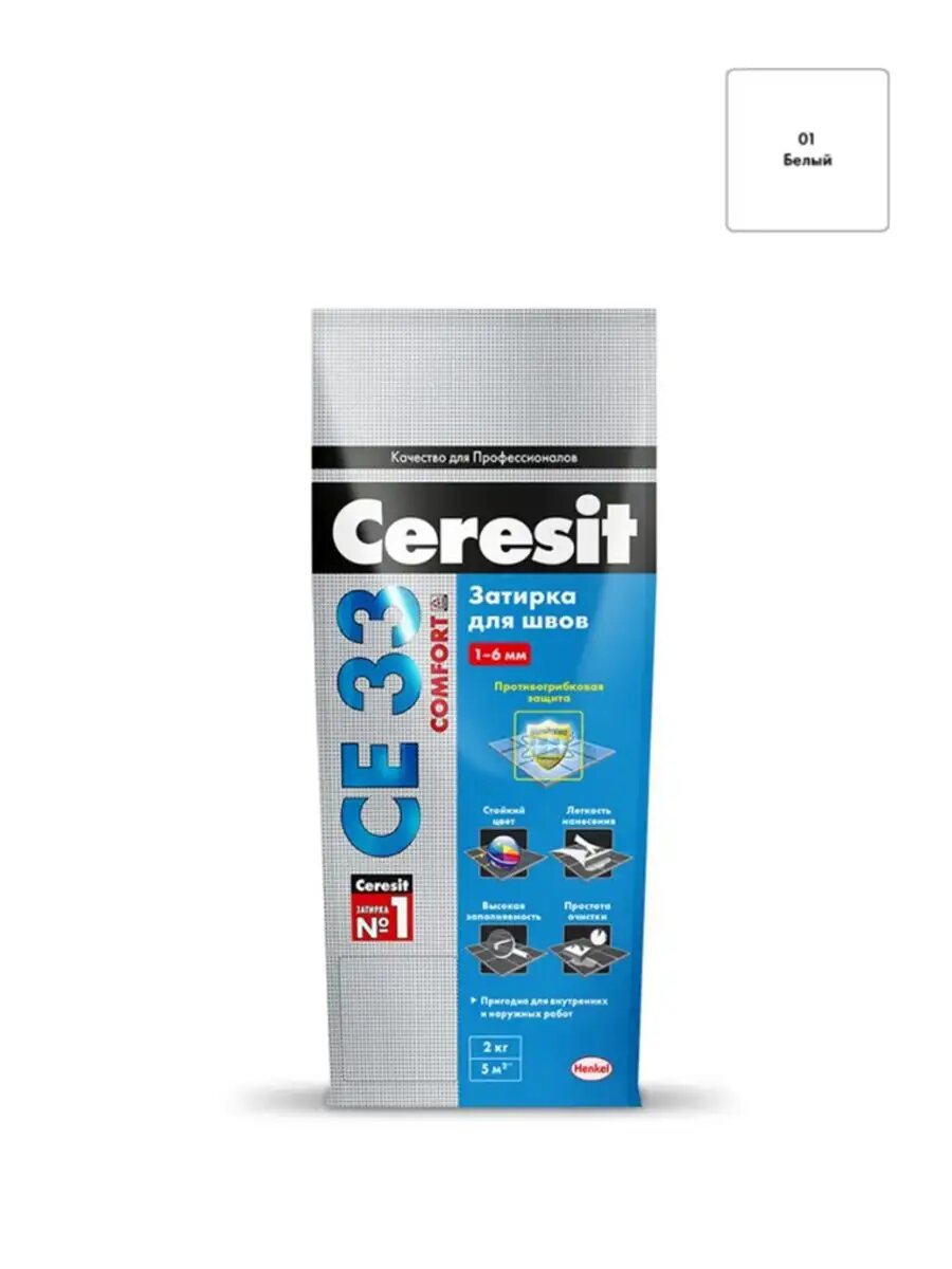 **Цветная затирка для швов Ceresit CE 33 Comfort** - предназначена для заполнения швов керамических и каменных облицовок, устроенных на полах и стенах внутри и снаружи зданий. Применяется при ширине шва от 1 до 6 мм на недеформирующихся основаниях: бетоне, цементных стяжках и штукатурках.