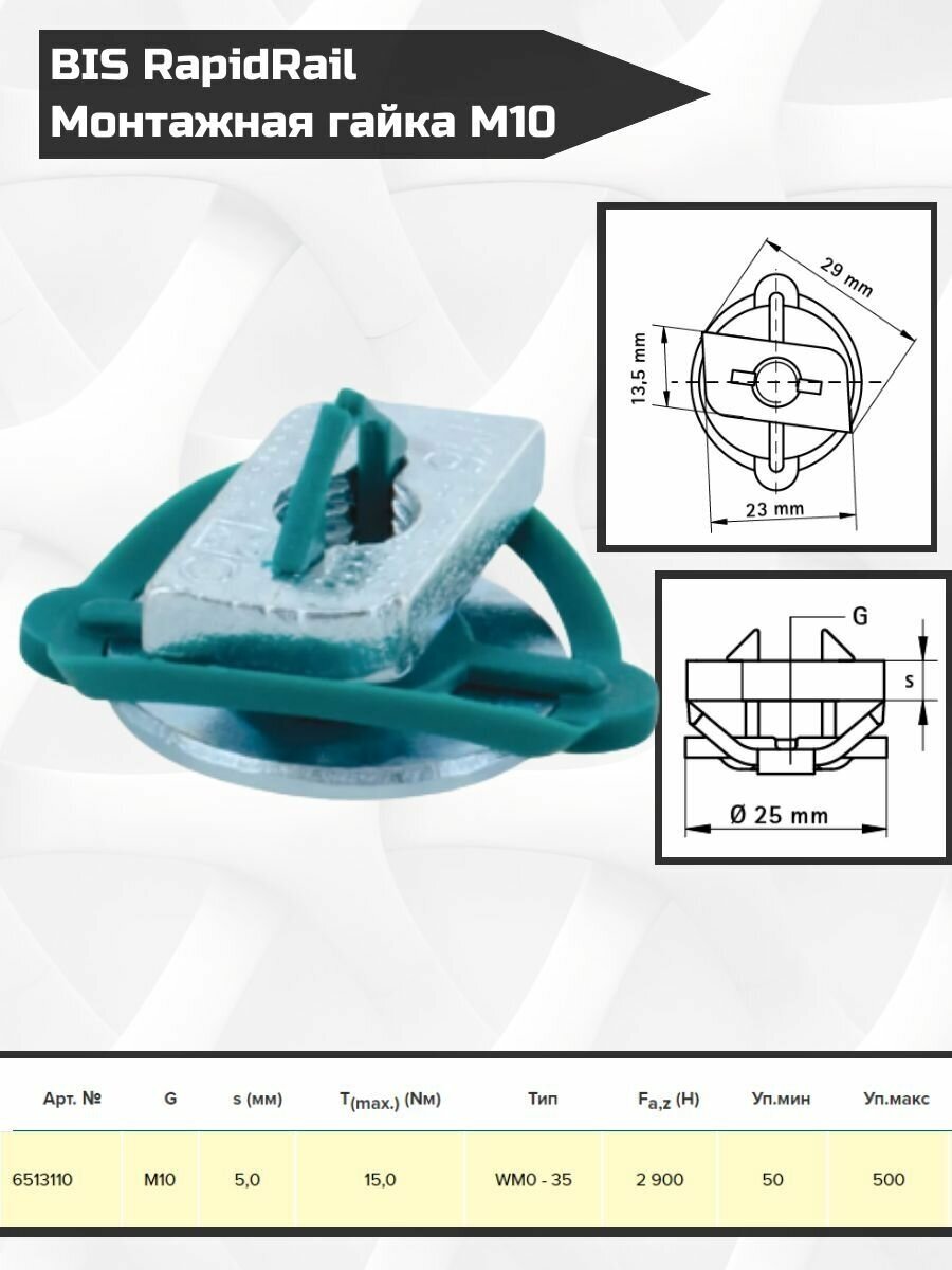 - Монтажная гайка с шайбой и пластмассовой пружиной BIS RapidRail®