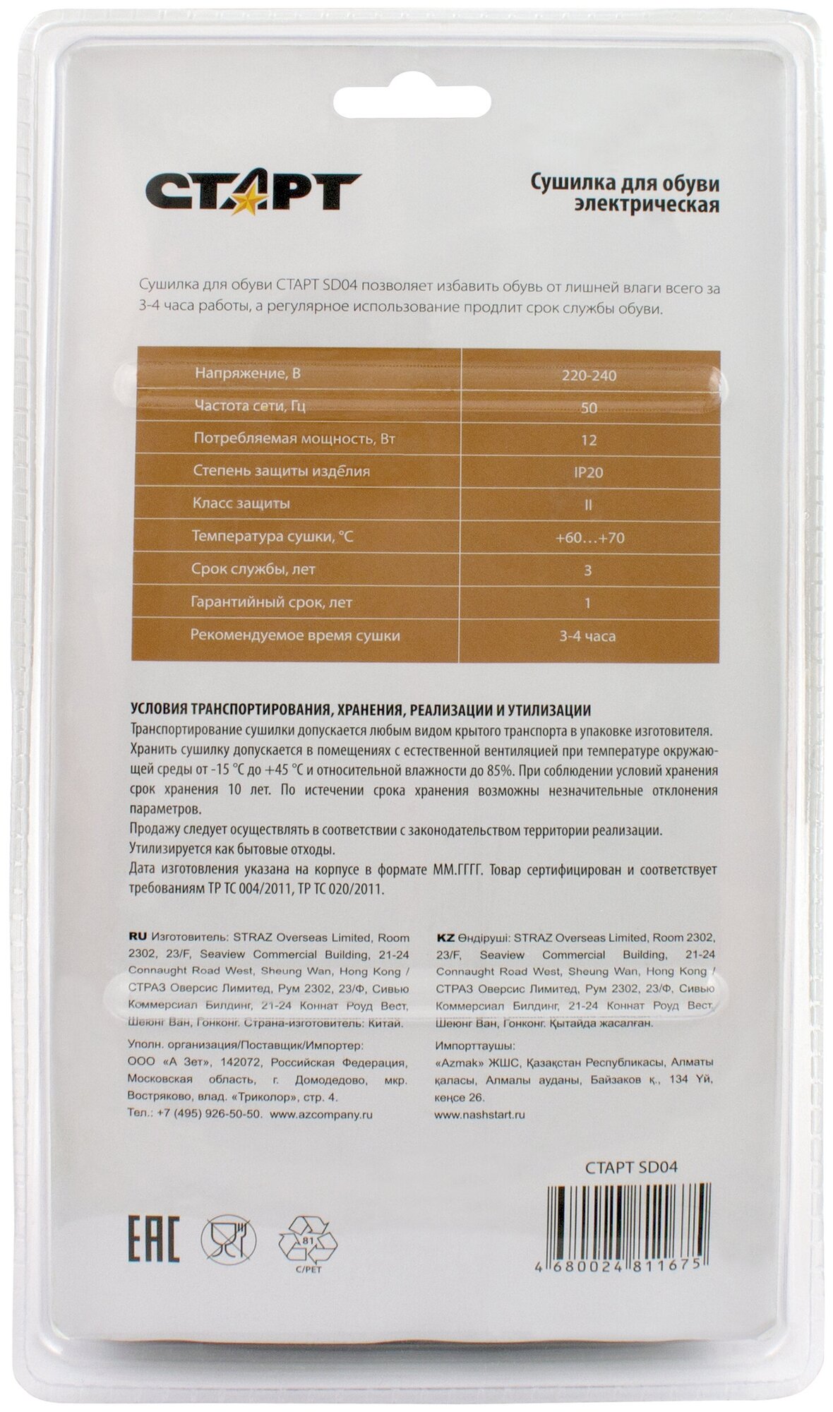 В слякоть или дождь вопрос с сушкой промокшей обуви особенно актуален. Ходить во влажной обуви вредно для здоровья. Не зря народная мудрость гласит: ноги должны быть в тепле. Электрическая сушилка для обуви СТАРТ SD04 поможет вашим ногам всегда оставаться в сухости и комфорте. Приобретая данный прибор, вы избавите себя и своих домочадцев от проблемы плохо просушенной обуви и деформации обуви после сушки ""бабушкиными"" методами.