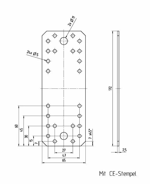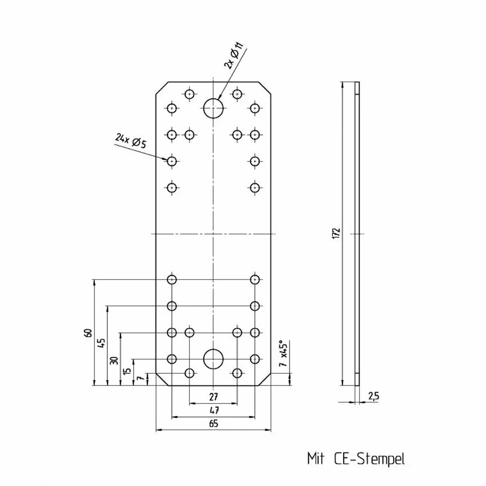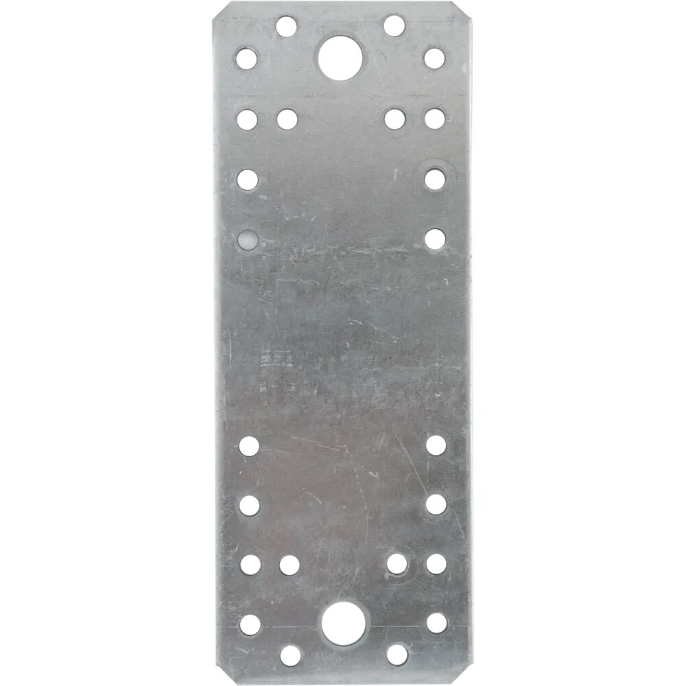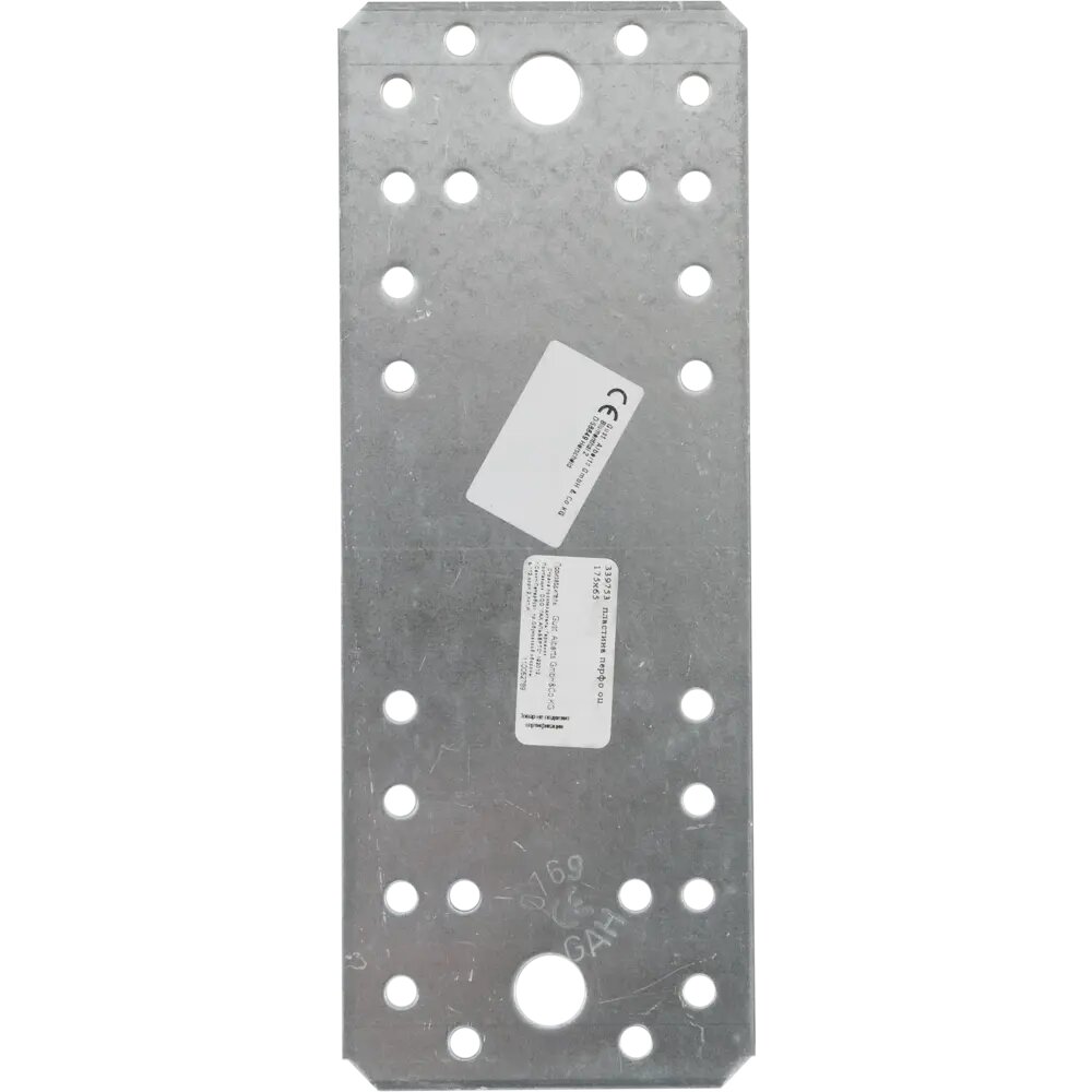 **Пластина крепежная 175х65x2,5 мм** используется для соединения нескольких элементов, расположенных в одной плоскости. Применяется с деревянными изделиями — в частности, при строительстве, сборке или ремонте мебели. Пластина размером 172 × 65 мм и толщиной 2,5 мм выполнена из оцинкованной стали, благодаря чему не боится влажности и коррозии. С обеих сторон имеет отверстия под шурупы или болты. Продается поштучно. Страна производства — Германия.