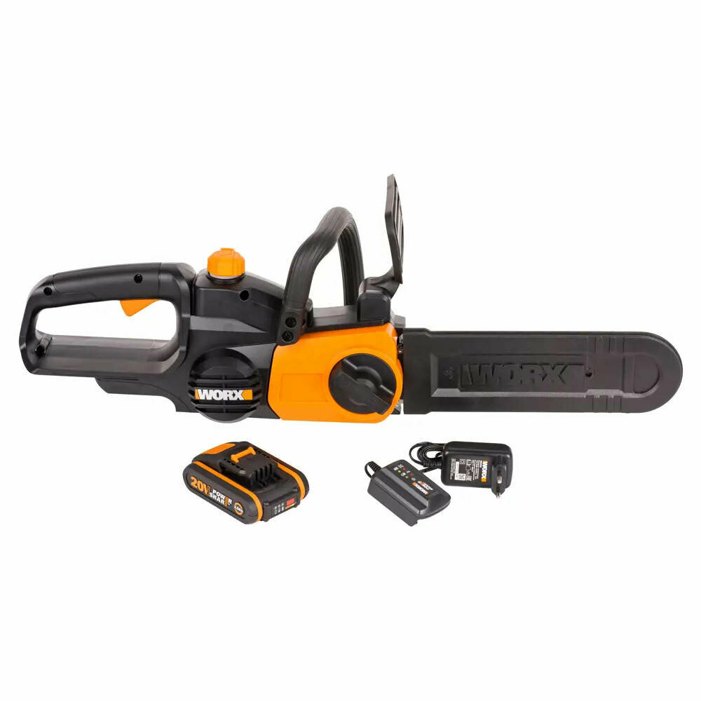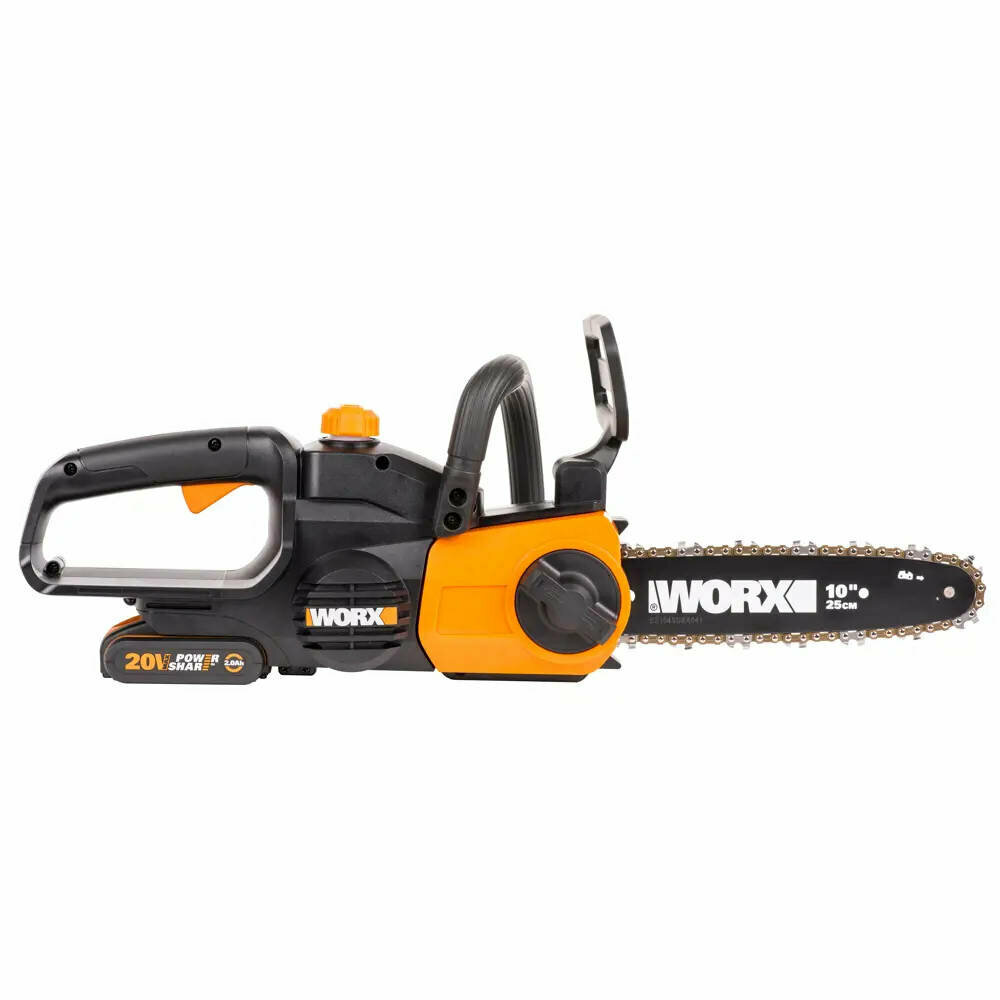 **Аккумуляторная пила Worx , 20 В шина 25 см АКБ и ЗУ в комплекте** - компактная и легкая цепная пила обладает достаточной мощностью для заготовки дров и решения любых задач на садовом участке, включая валку деревьев. Питаясь от одного универсального аккумулятора Powershare 20В, пила отлично подходит для работы вдали от электросети.