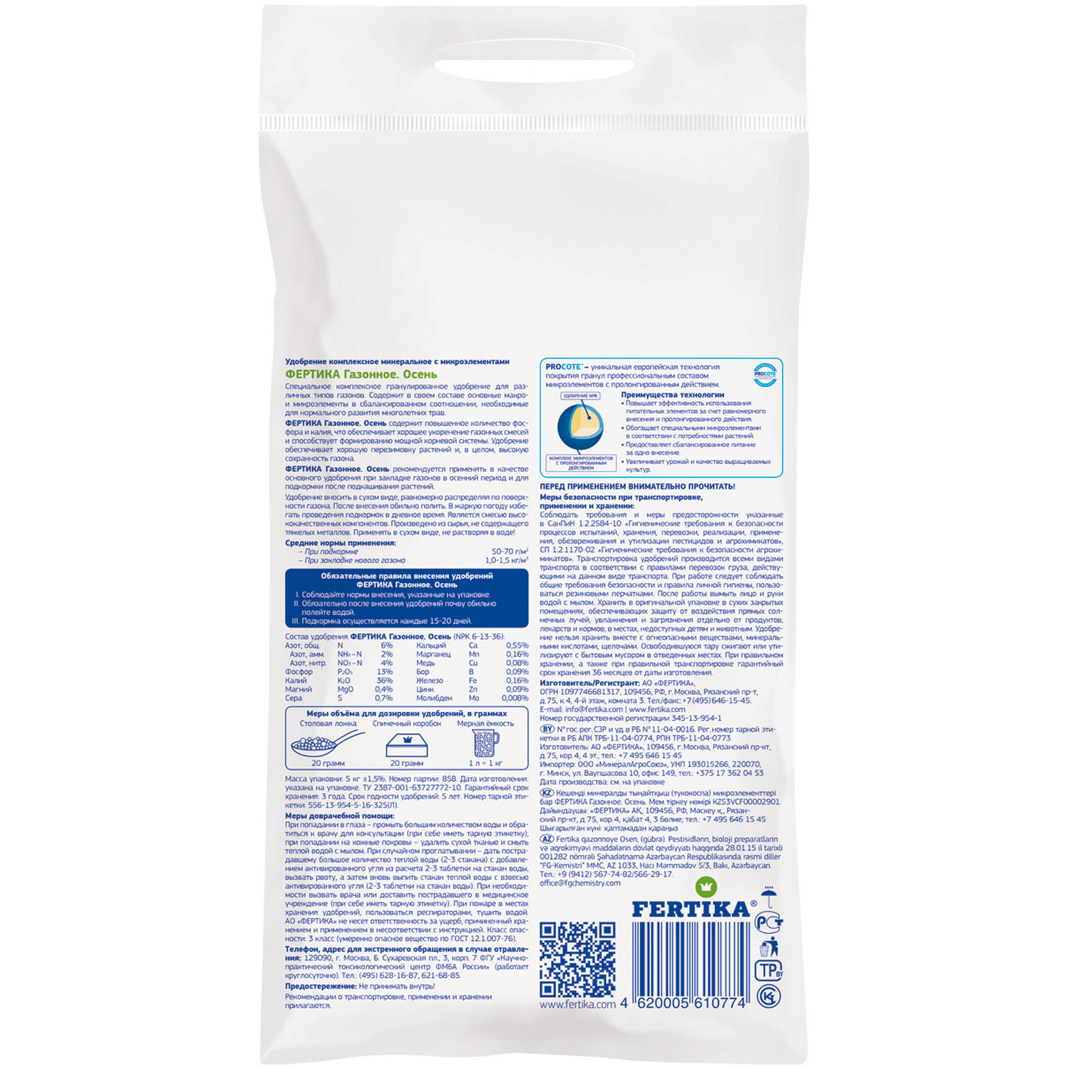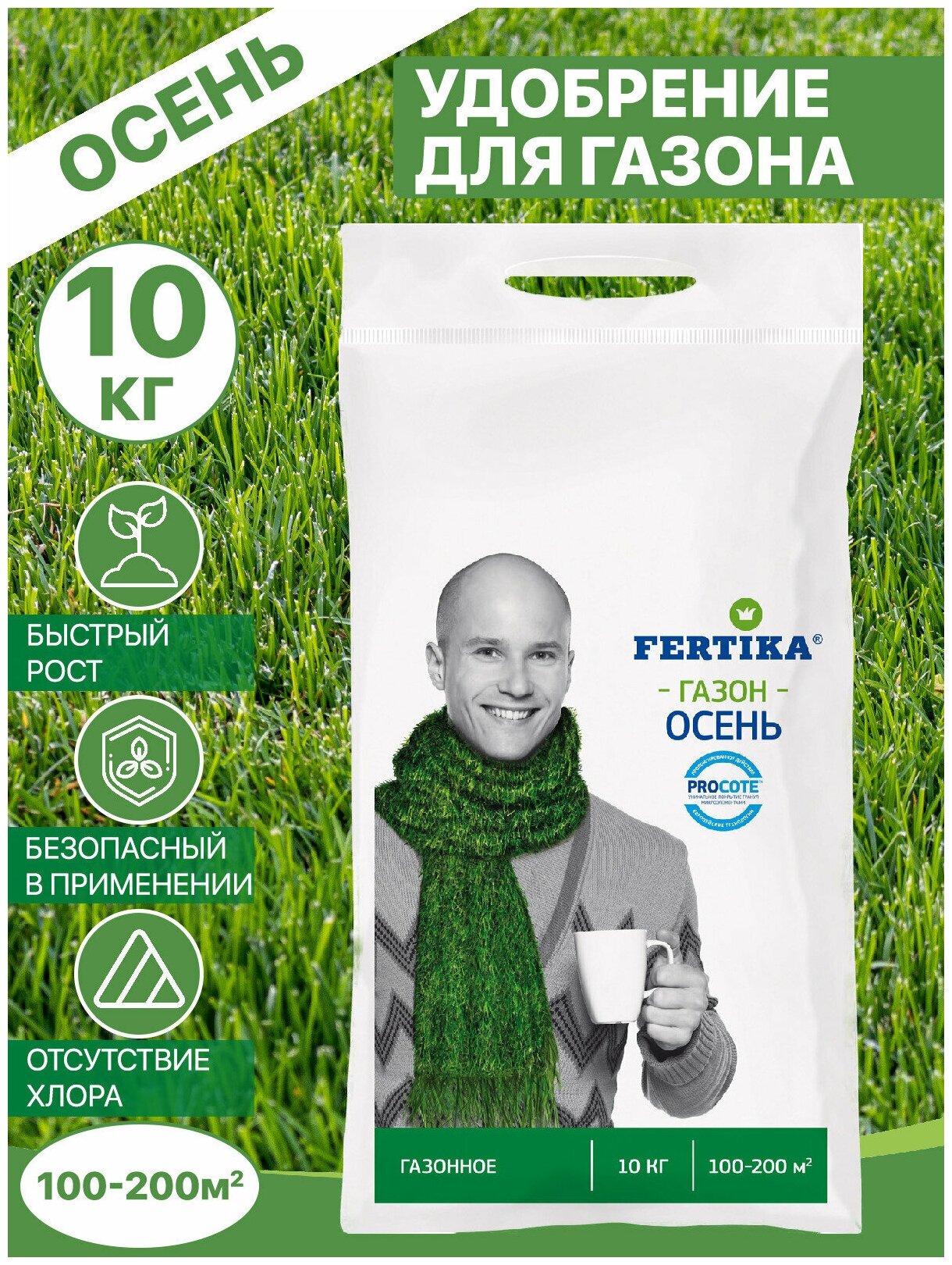 **Удобрение «Фертика Газонное Осень»** — гранулированный комплекс минералов и микроэлементов, необходимых для нормального развития трав, оптимален для осенней подкормки. Благодаря повышенному содержанию фосфора и калия способствует образованию развитой корневой системы, что помогает многолетним травам перезимовать без потерь. Обеспечивает хорошую сохранность газона.