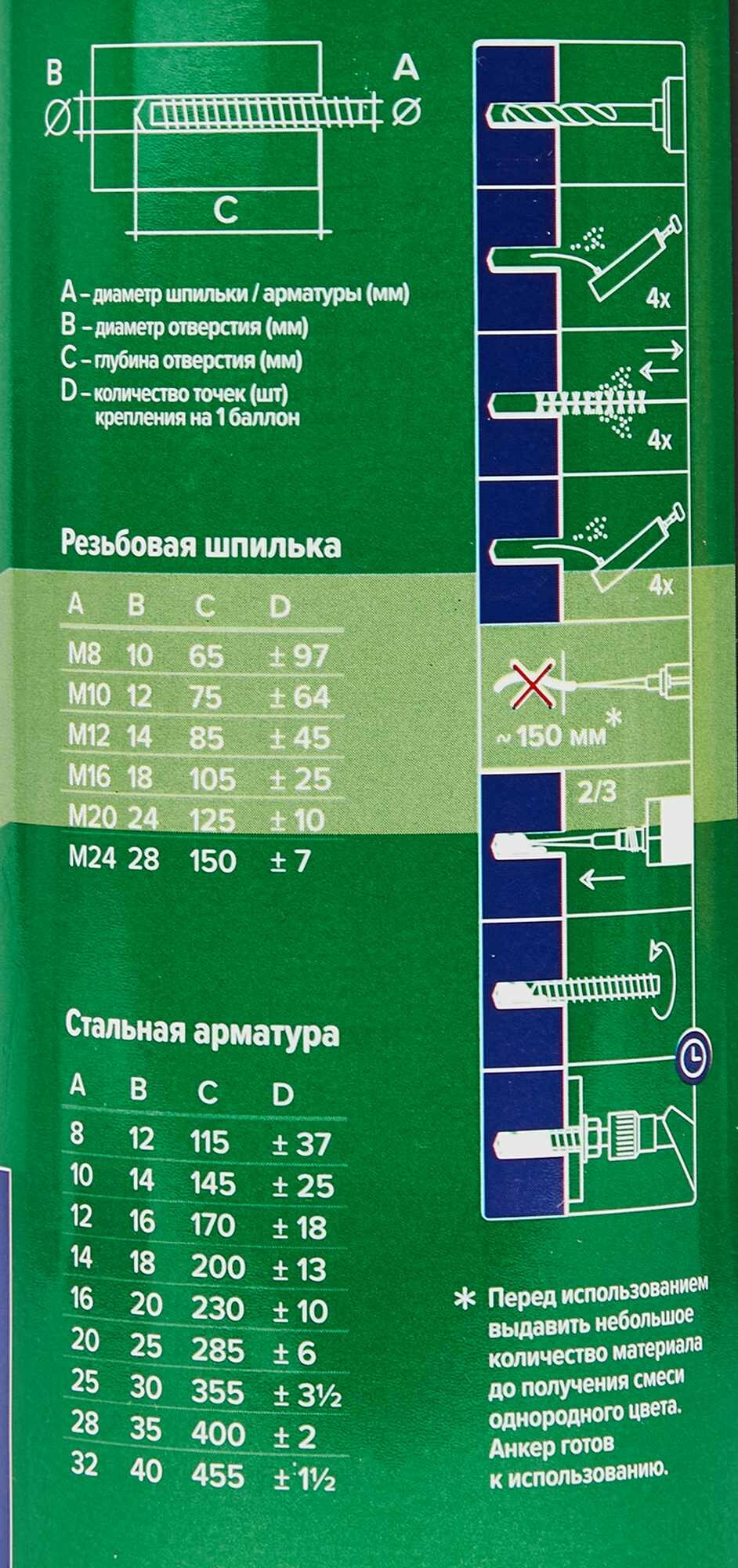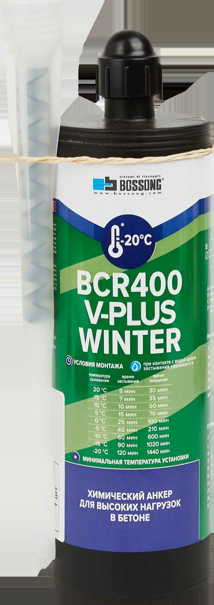 **Анкер химический Партнер Winter V-Plus 400 BCR** применяется для надежной фиксации шпилек, болтов, арматурных стержней в бетоне, в том числе при высоких нагрузках. Состав упакован в пластиковую тубу объемом 400 мл. Монтаж осуществляется при помощи стандартного пистолета для выдавливания вязко-текучих составов. При помощи анкера возможна фиксация шпилек на глубину от 6.5 до 15 см (в зависимости от диаметра), стальной арматуры от 11.5 до 45.5 см. Возможно применение в диапазоне от -20 до 20°C.