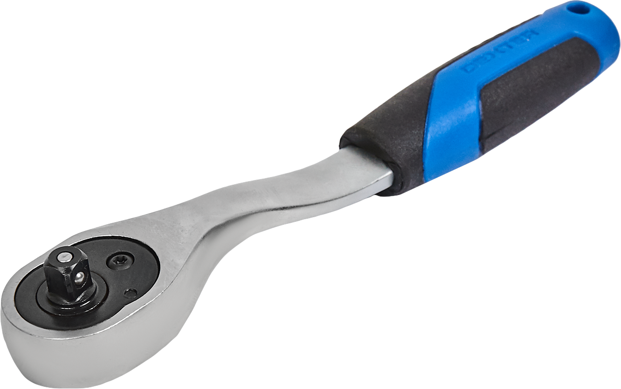 **Трещотка Dexter** предусмотрена для быстрого и эффективного закручивания или откручивания гаек. Ей удобно пользоваться в условиях ограниченного пространства, когда нет возможности сделать полный оборот вокруг гайки. Ручка с прорезиненными вставками не выскальзывает из ладони.