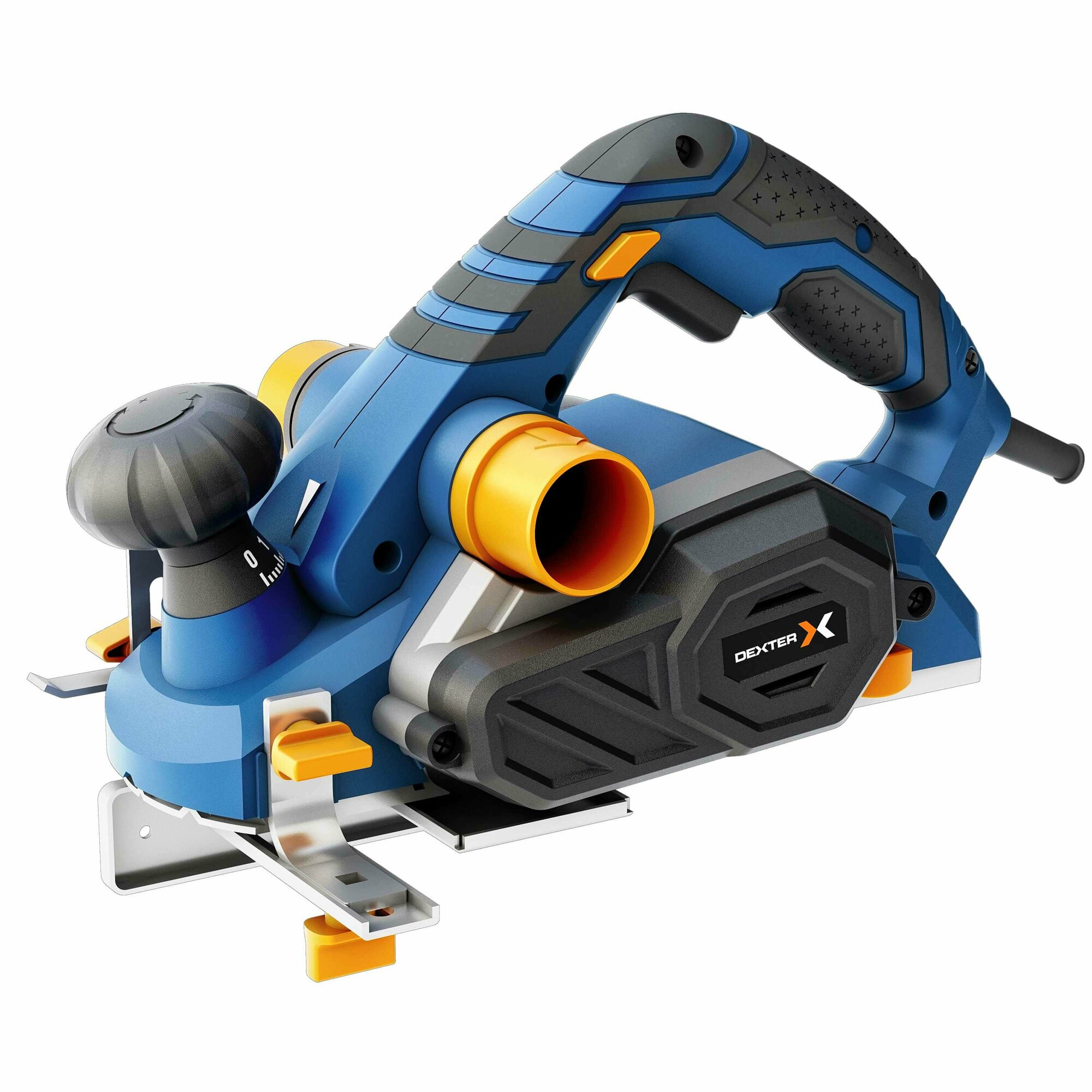 **Рубанок Dexter 5** используется для проведения работ по обработке различных поверхностей. Оснащен ручкой, которая не скользит во время работы и удобно лежит в руке. Подошва изготовлена из алюминия, устойчивого к внешним негативным воздействиям, деформации и коррозии. Работает от сети переменного тока. Длина кабеля составляет 3 м.