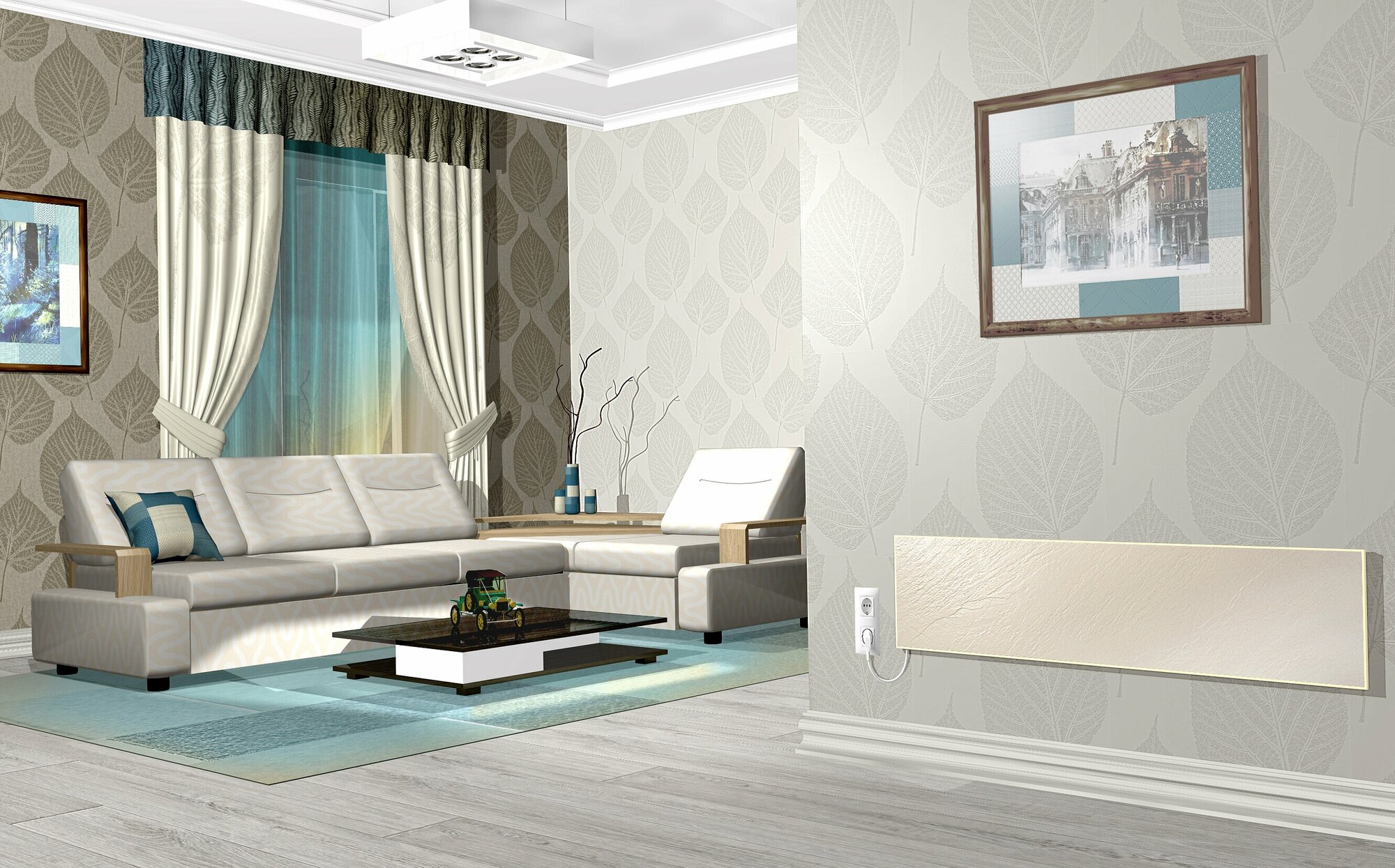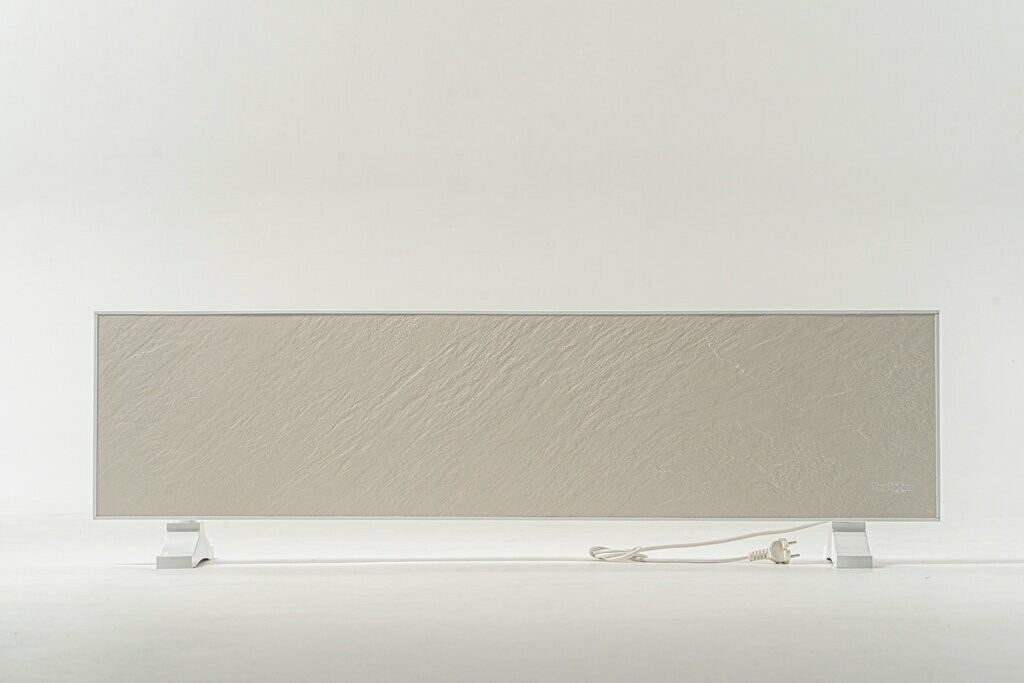 Электрообогреватель состоит из металлического, окрашенного корпуса, в который установлена греющая инфракрасная панель, которая выполнена из цельного Уральского гранита, в состав которого входит кварцевый песок, что сохраняет целостность поверхности при нагревании. На корпусе механическая кнопка для включения/выключения прибора и подключения скрытой проводки. Безнадзорное использование обогревателя. Возможность установки на ножки для напольного размещения при покупке специального комплекта ножек.