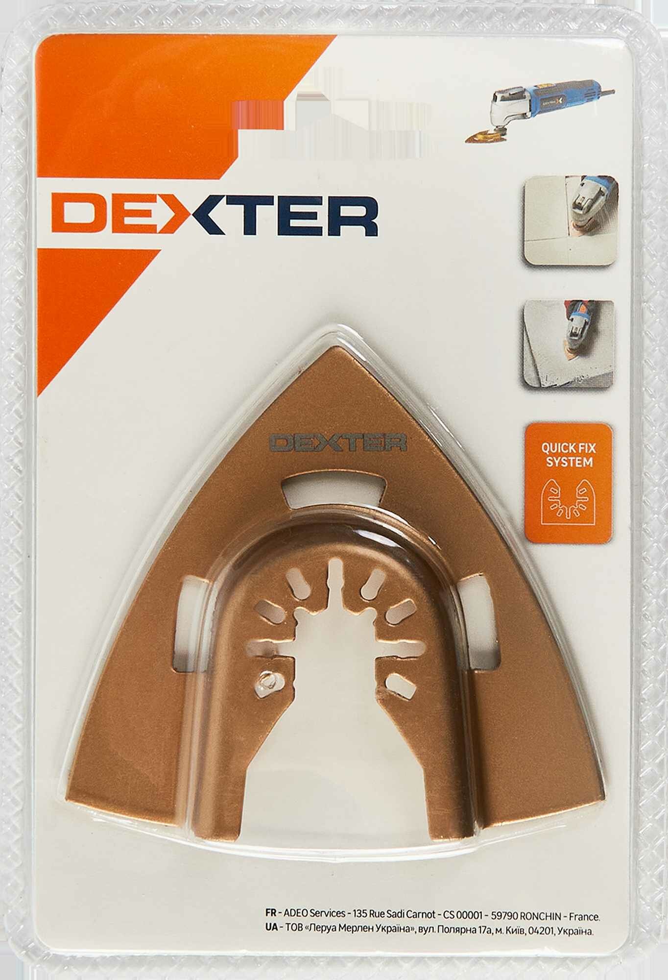 **Насадка треугольная Dexter** предназначена для обработки керамической плитки. Используется для вырезания внутренних углов при подгоне материала, аккуратной обрезки материала при отделке проемов под коммуникации.