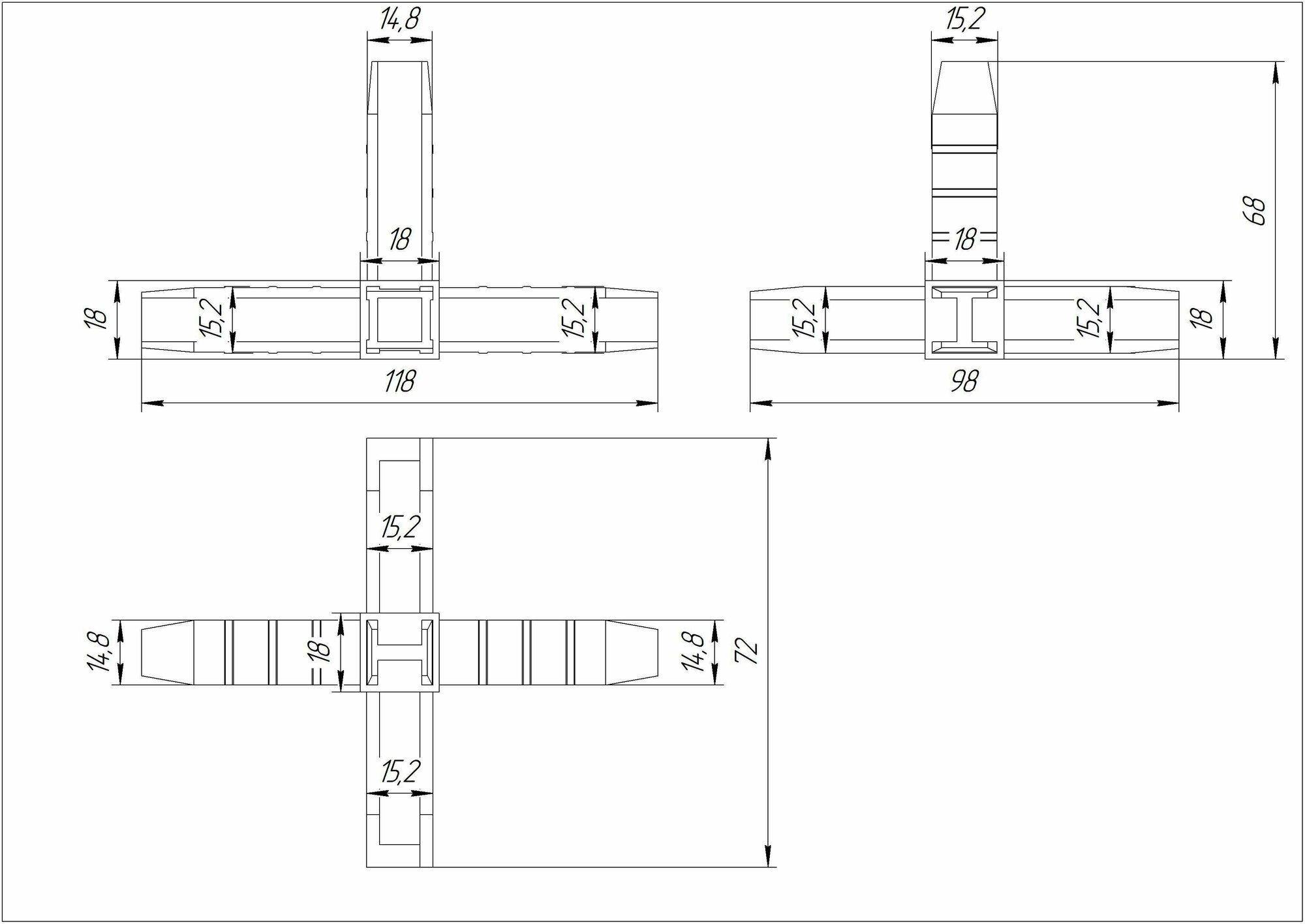 Коннектор 5 для профилей 15х15 мм пластик черный Без бренда Коннектор 5, черный