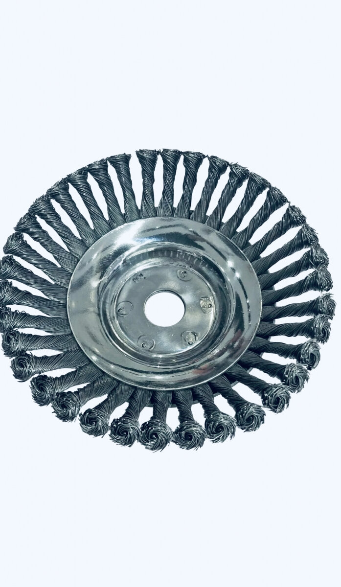 **Щетка триммерная ** используется для зачистки тротуарной плитки. Подходит для удаления кустарников, цветов, травы, мха, которые пробиваются через зазоры между элементами покрытия. Количество проволоки в жгуте составляет 36 штук. Насадка не регулируется по высоте или углу наклона.