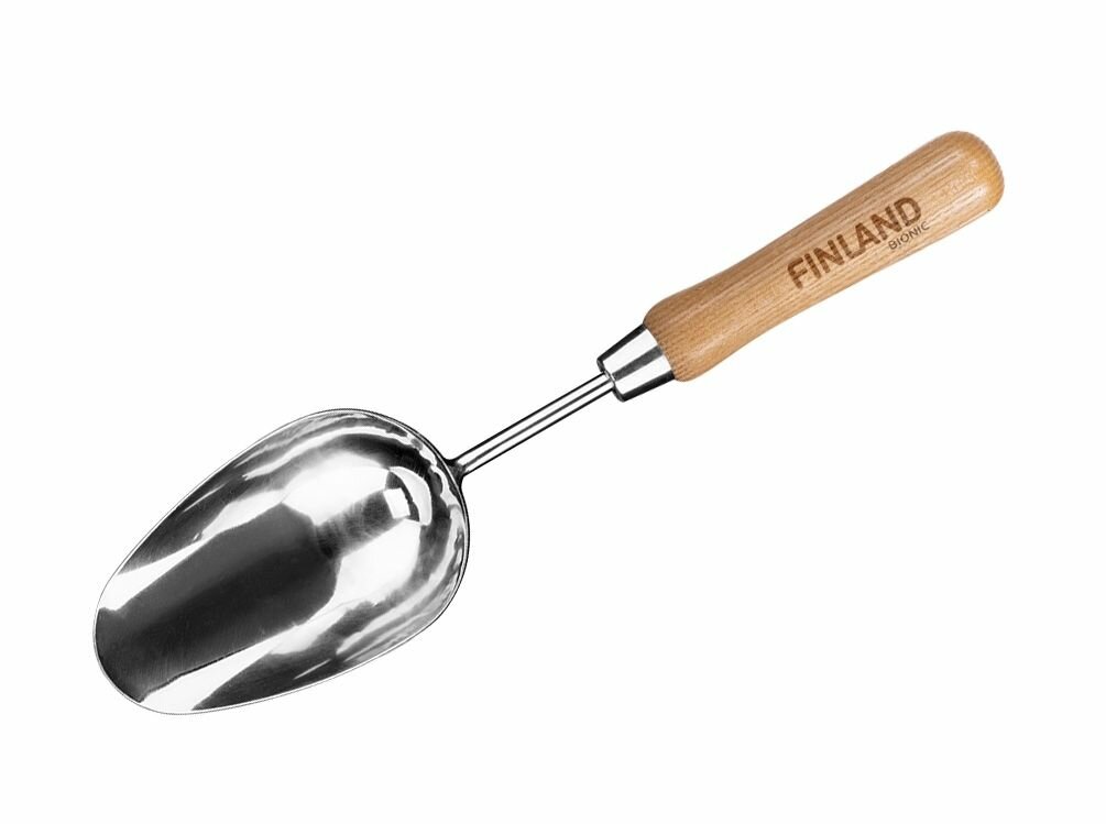 **Совок Finland с черенком** — садовый инвентарь, предназначенный для посадочных работ. Используется для выкапывания лунок небольшого размера для цветов, рассады. Может эксплуатироваться в домашних условиях. Легко очищается от грязи и земли под струей воды.