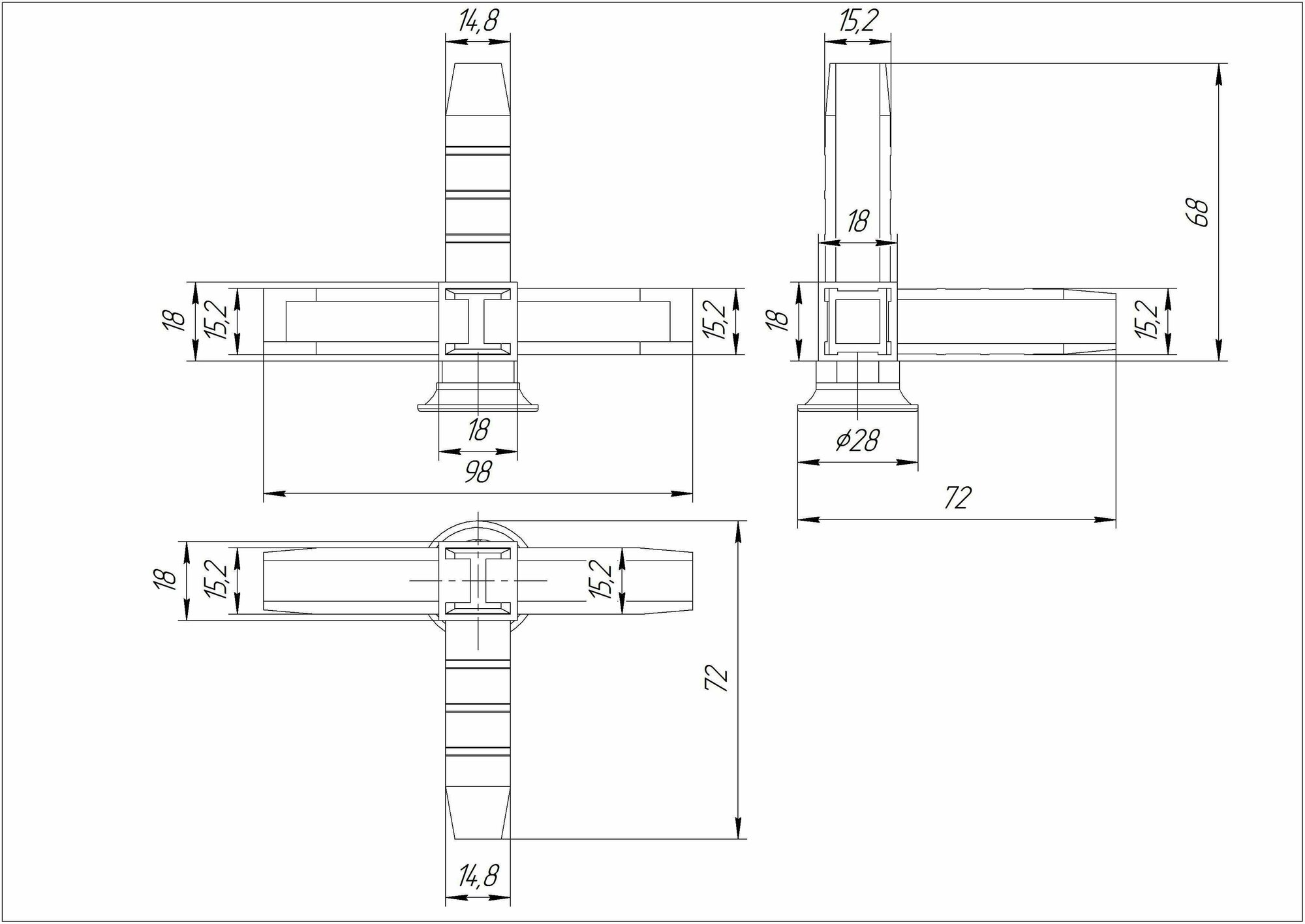 Коннектор 4 с регулируемой опорой для профилей 15х15 мм пластик черный Без бренда