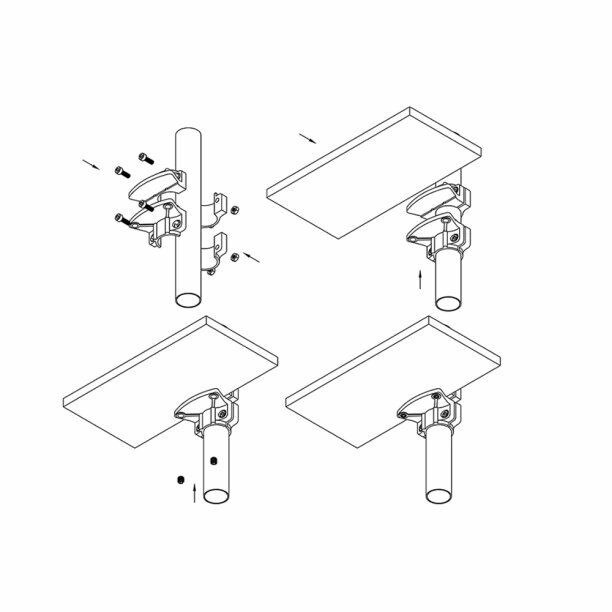 **Держатель панели горизонтальный** — односторонний крепеж, применяемый при монтаже стеллажей с полками, прилавков и другого подобного оборудования. Используется в системе с джокерными трубами. Включает в себя 2 элемента, которые фиксируются на вертикальных стойках с помощью болтов по аналогии с разъемными хомутами.