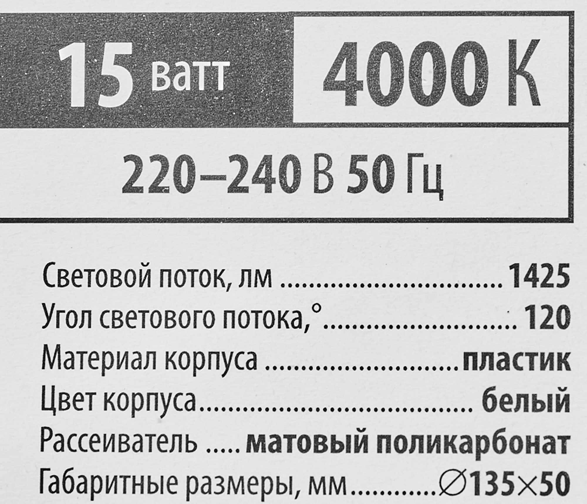 | Световой поток (Лм) | 1425.0 |
