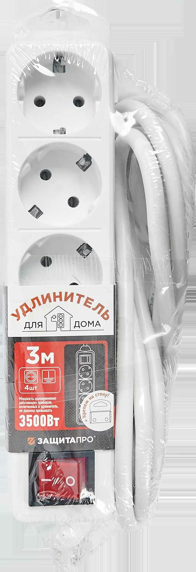 Удлинитель бытовой Защита Про 4 розетки с заземлением 3х1.5 мм 3 м 3500 Вт цвет белый УДЛИНИТЕЛЬ 4 П 3500ВТ С ВЫКЛЮЧ. С/З, 3 М