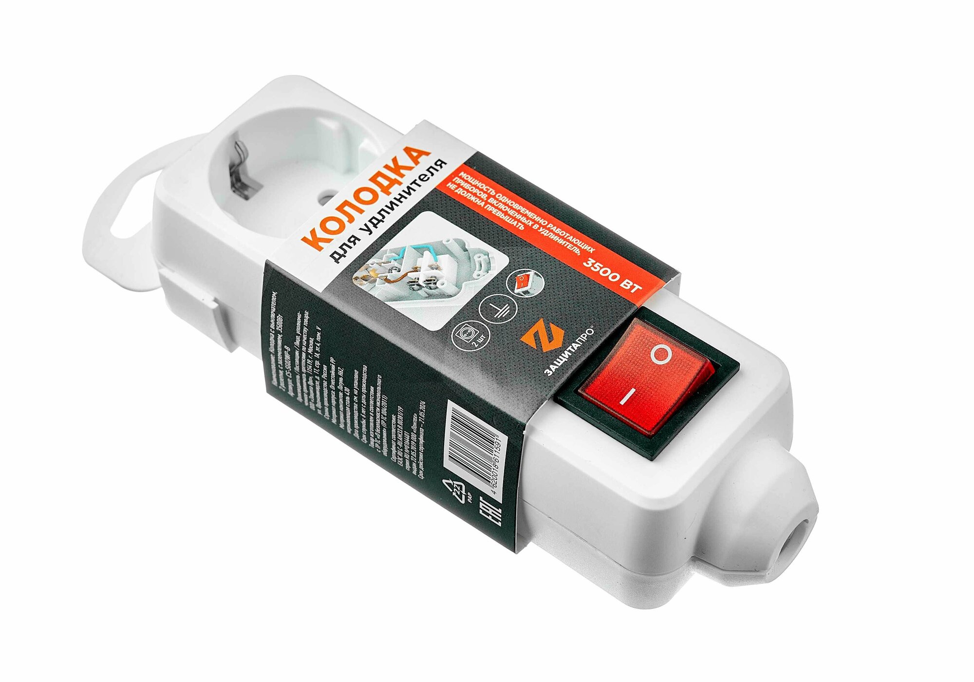 Колодка для удлинителя Защита Про 2 розетки с заземлением 3500 Вт цвет белый КОЛОДКА 2 ПОСТА С ВЫКЛЮЧ. С/З, 3500 ВТ