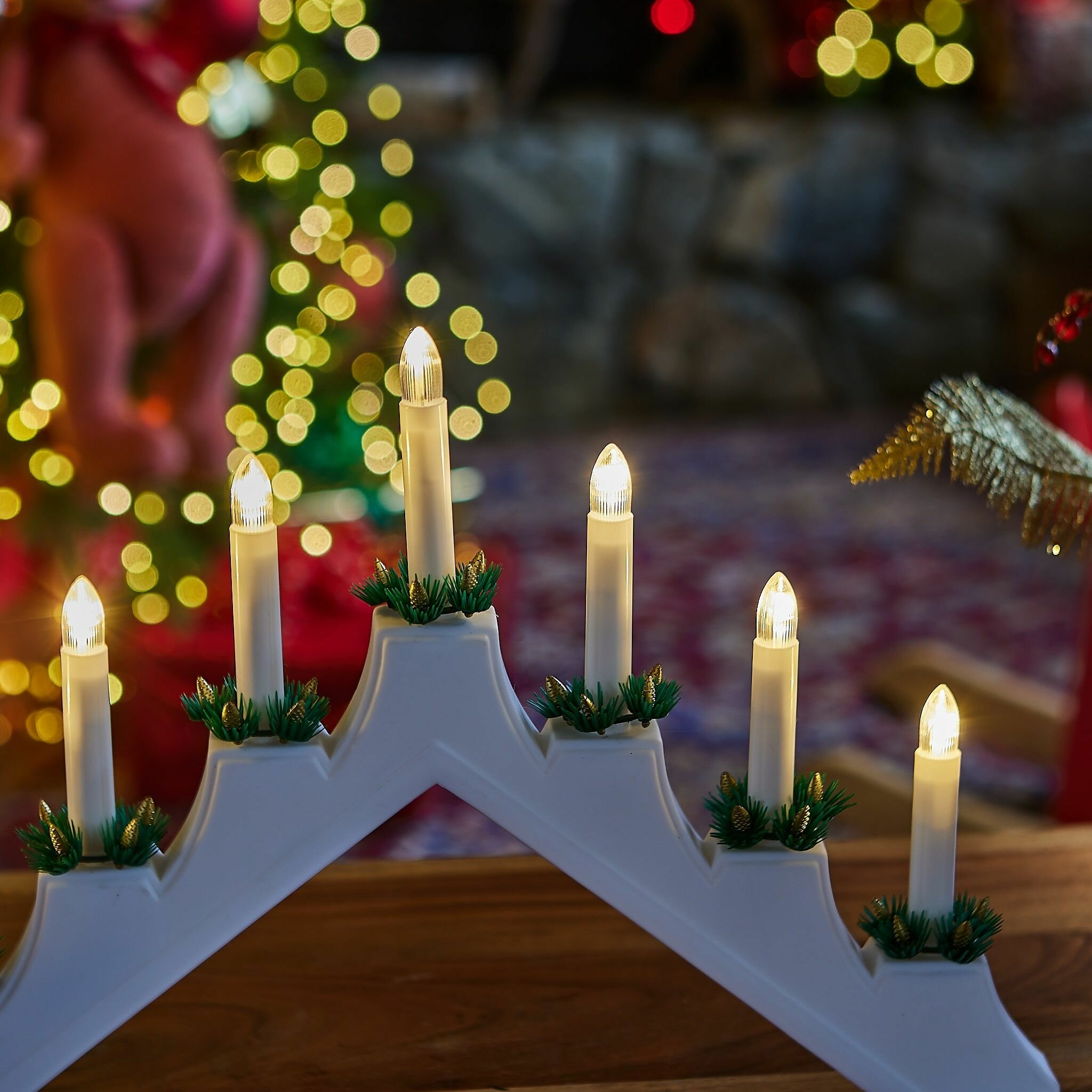 **Светильник декоративный светодиодный Uniel Горка** с 7 лампами и статическим свечением подходит для украшения помещений к праздникам. Не предназначен для использования в комнатах с повышенной влажностью. Устройство располагают на каминной полке, около новогодней ели, на полке или столе. Отличается устойчивостью и не переворачивается.
