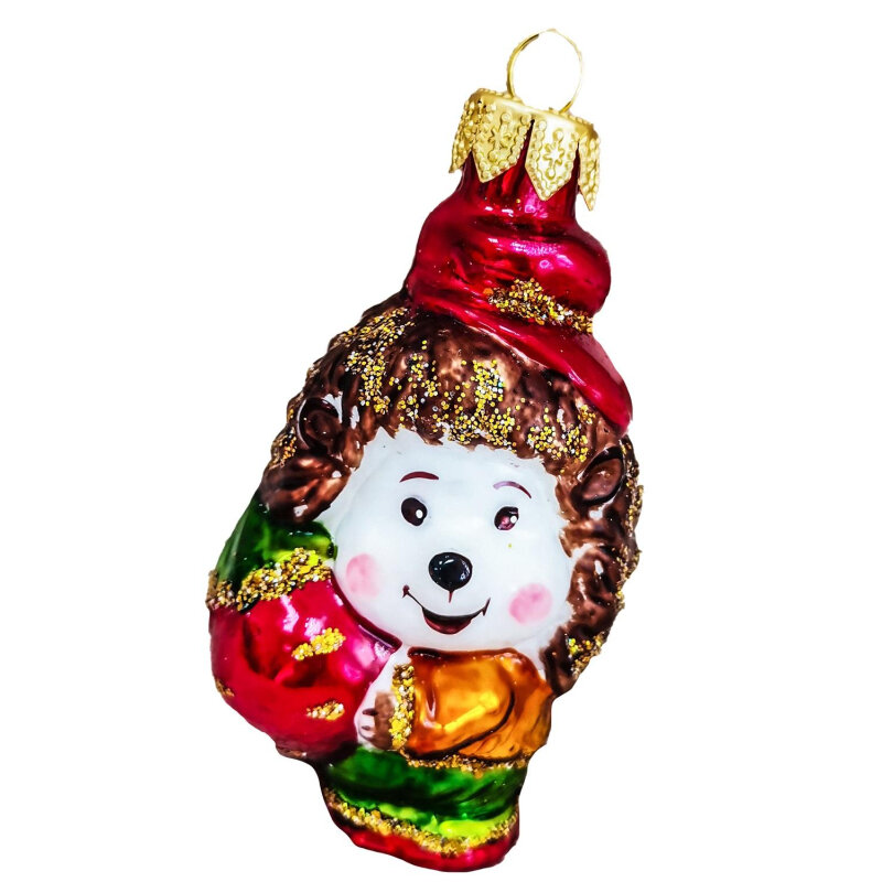 Елочное украшение Ёжик/Снеговик высота 10 см Без бренда Ёжик с яблоком