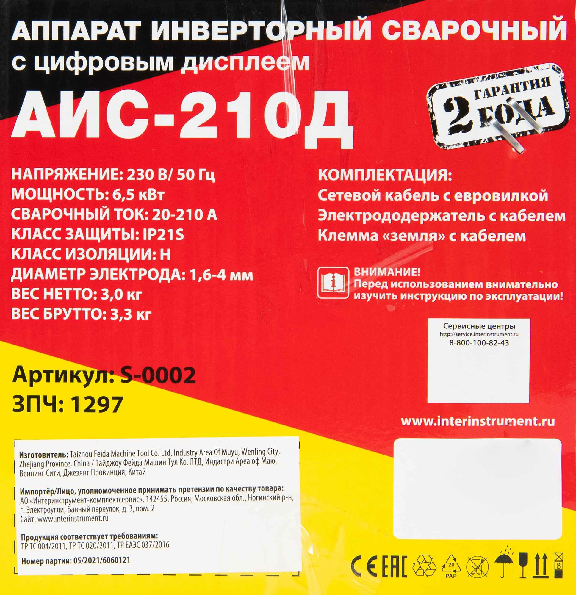 | Максимальный ток для MMA сварки (A) | 210.0 |