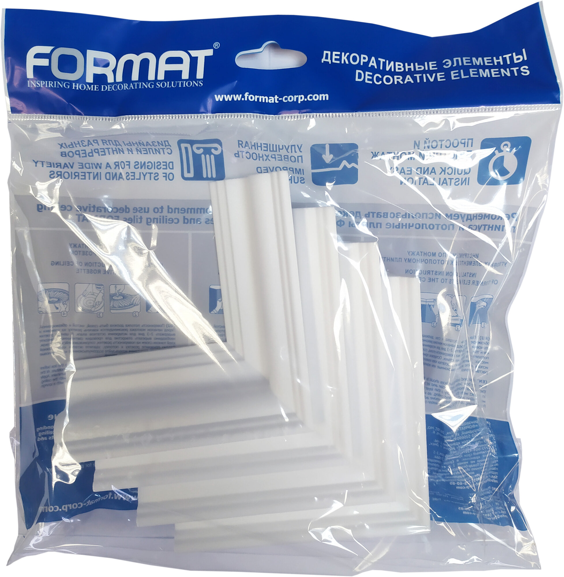 **Уголок для плинтуса Format ** — декоративный элемент, используемый при оформлении стыков между стенами и потолком. Устанавливается в местах со сложной геометрией и соединяет плинтусы 06004E из одноименной коллекции. Модель выполнена из плотного полистирола, который при необходимости можно окрасить в любой цвет с помощью красок (акриловых и на водной основе).