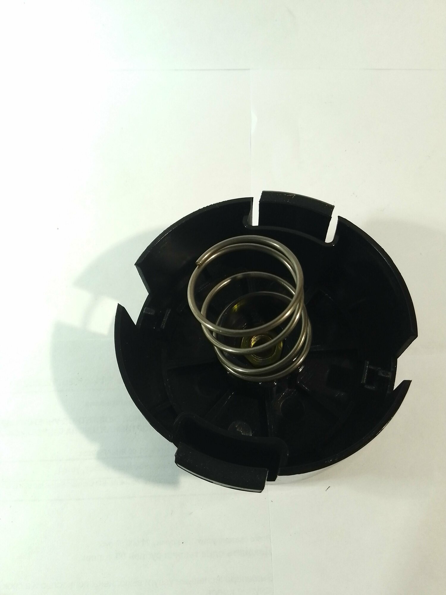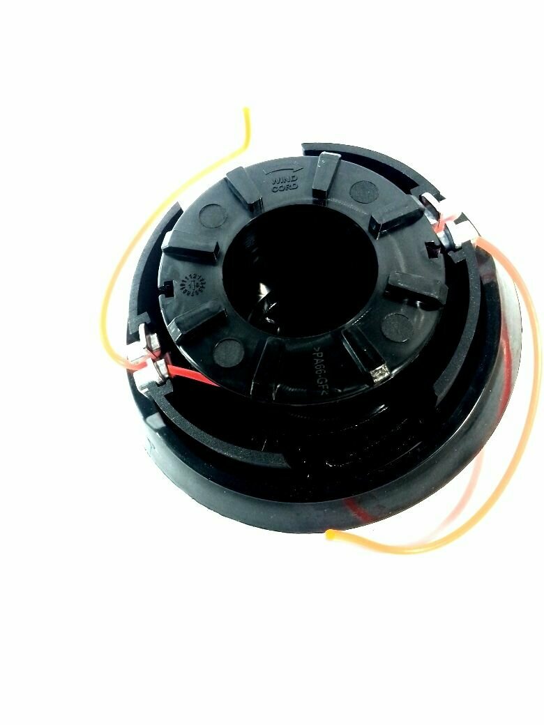 Катушка для триммера представляет собой катушку с леской, закрытую пластиковым корпусом. Головка является полуавтоматической, т.е. леска подается либо вручную при выключенном двигателе, либо автоматически при включенном двигателе и нажатии кнопкой (в нижней части головки) о землю.