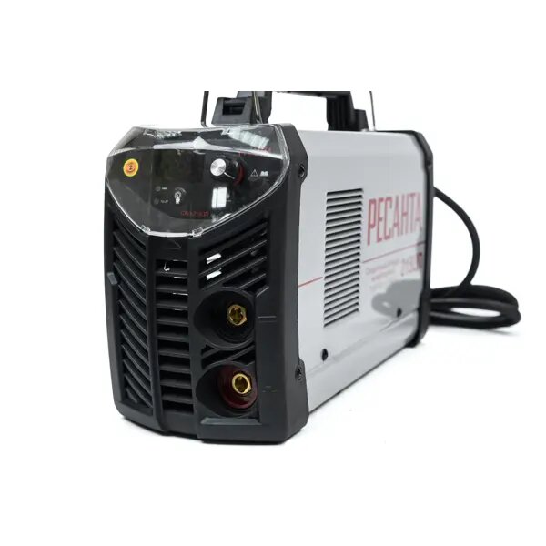**Сварочный аппарат инверторный Ресанта ** предназначен для сварки металлических изделий. Оснащен функцией антизалипания, которая отключает устройство при коротком замыкании. Опция горячего старта в минимально короткое время разжигает дугу, возвращает прибор к заданным пользователем параметрам. Для управления на фронтальной части есть механический переключатель.