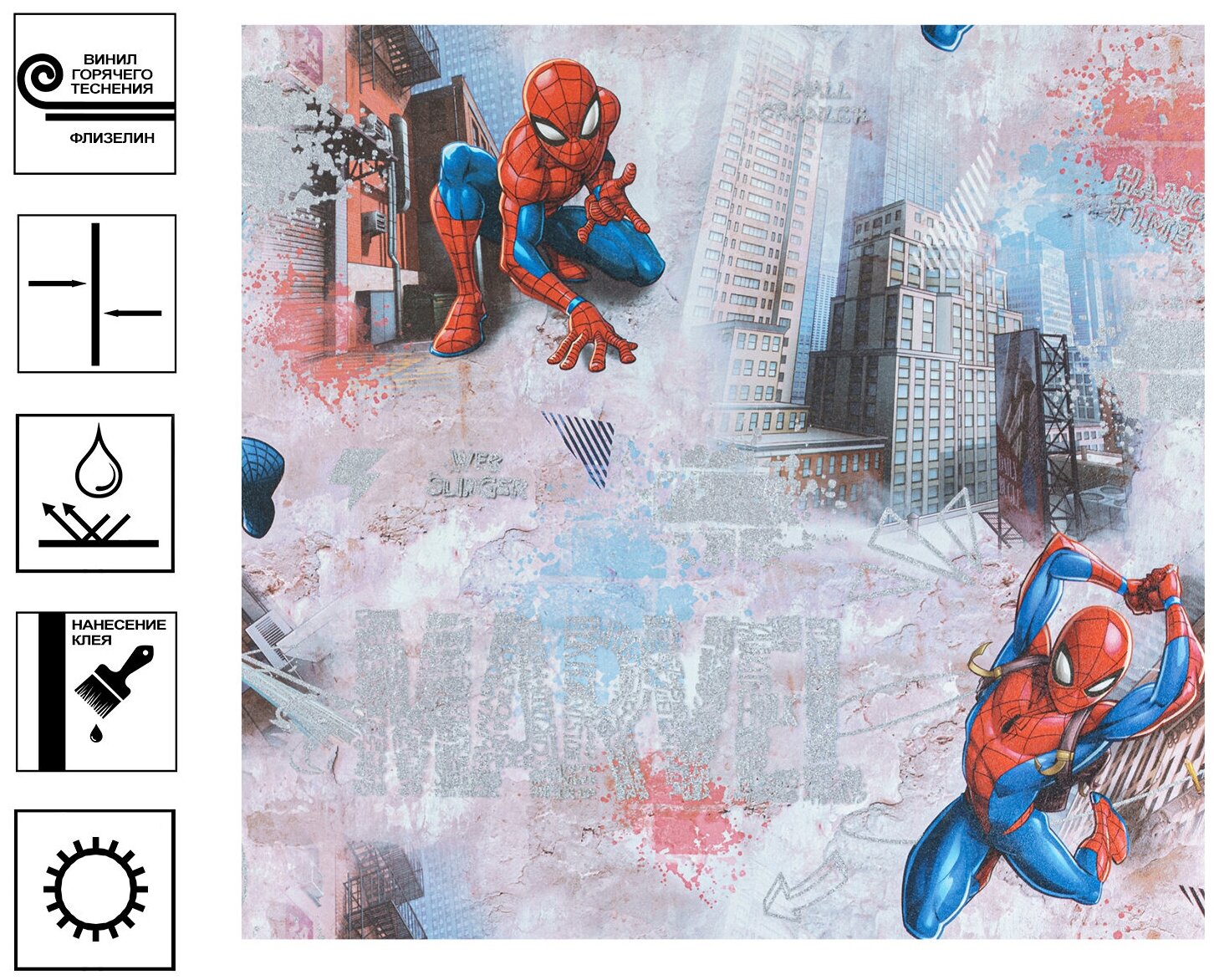 **Обои флизелиновые Человек Паук** предназначены для отделки стен в помещениях жилого или коммерческого назначения. Изготовлены на флизелиновой основе, обладающей достаточной плотностью для формирования ровного и аккуратного покрытия, хорошо маскируют небольшие дефекты поверхности. Для нанесения не нужно обрабатывать полотно, достаточно хорошо промазать клеем стену. Перед работой следует выровнять и очистить основание от пыли и загрязнений. Обои хорошо демонтируются без предварительной обработки водой.