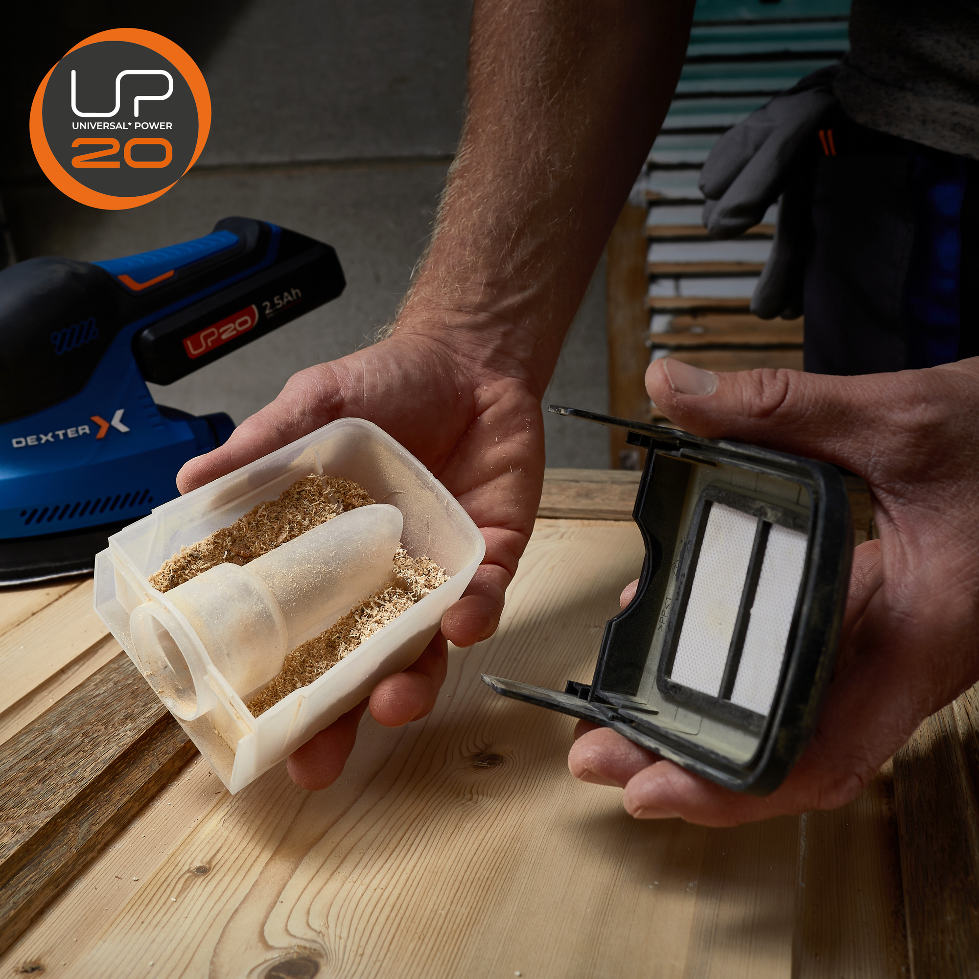 **Дельташлифовальная машина Dexter ** предназначена для бытового или нечастого профессионального использования. Используется для обработки деревянных и пластиковых поверхностей, применяется для изготовления жалюзи, мебели. Работает от Li-Ion аккумуляторной батареи. Оснастка крепится к платформе при помощи застежки-липучки.