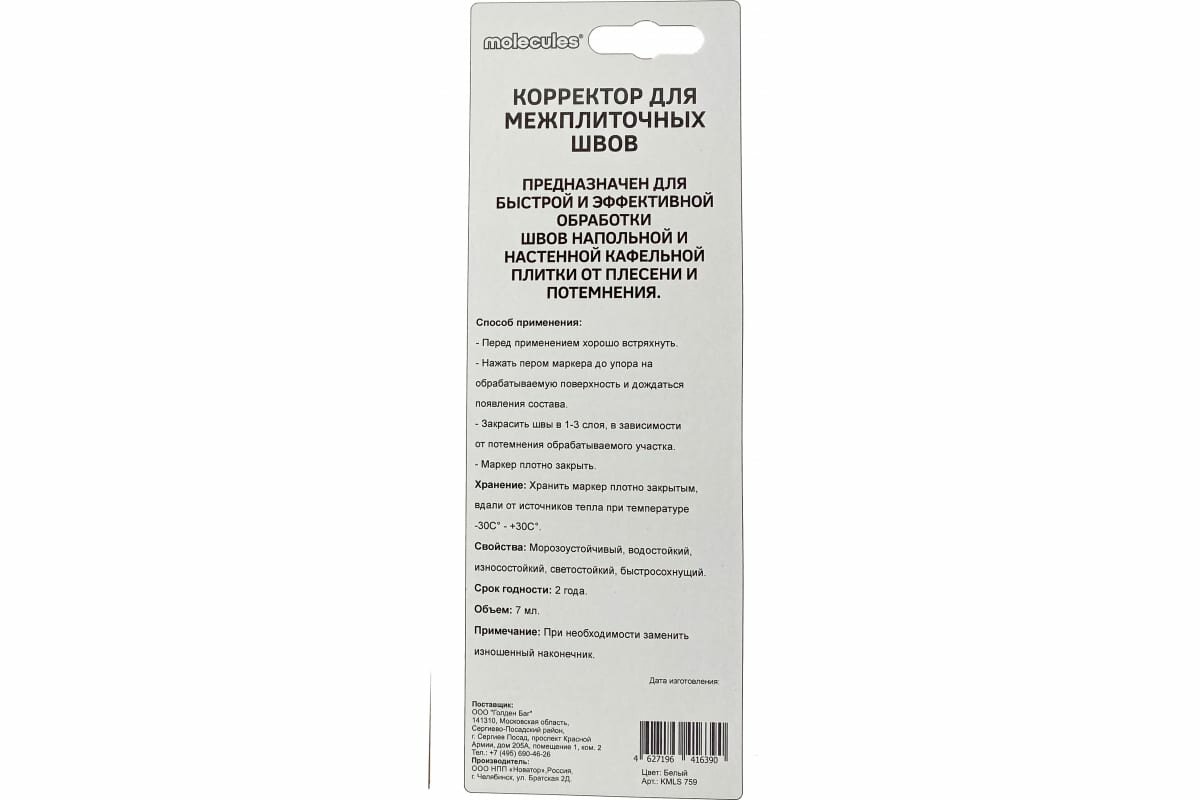 **Корректор для межплиточных швов** белого цвета предназначен для легкой обработки швов. Сфера его использования — кафельная плитка для стен и полов. Кроме декоративной функции корректор также эффективно избавляется от плесени и потемнений.