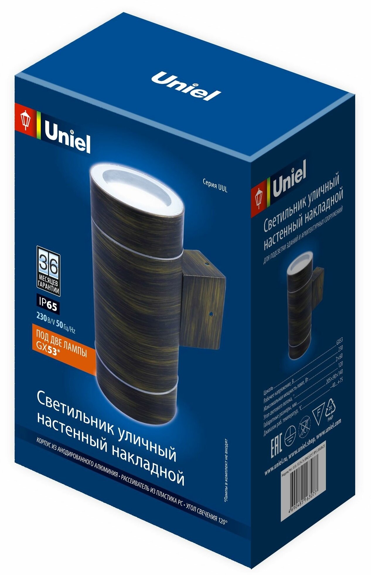 Сервис сравнения цен СкидкаГИД предлагает сравнить цены на товар «Уличный светильник накладной Uniel S92A 2х50 Вт GX53 IP65 цвет бронзовый UUL-S92A 2х50W/GX53 IP65 BRONZE»