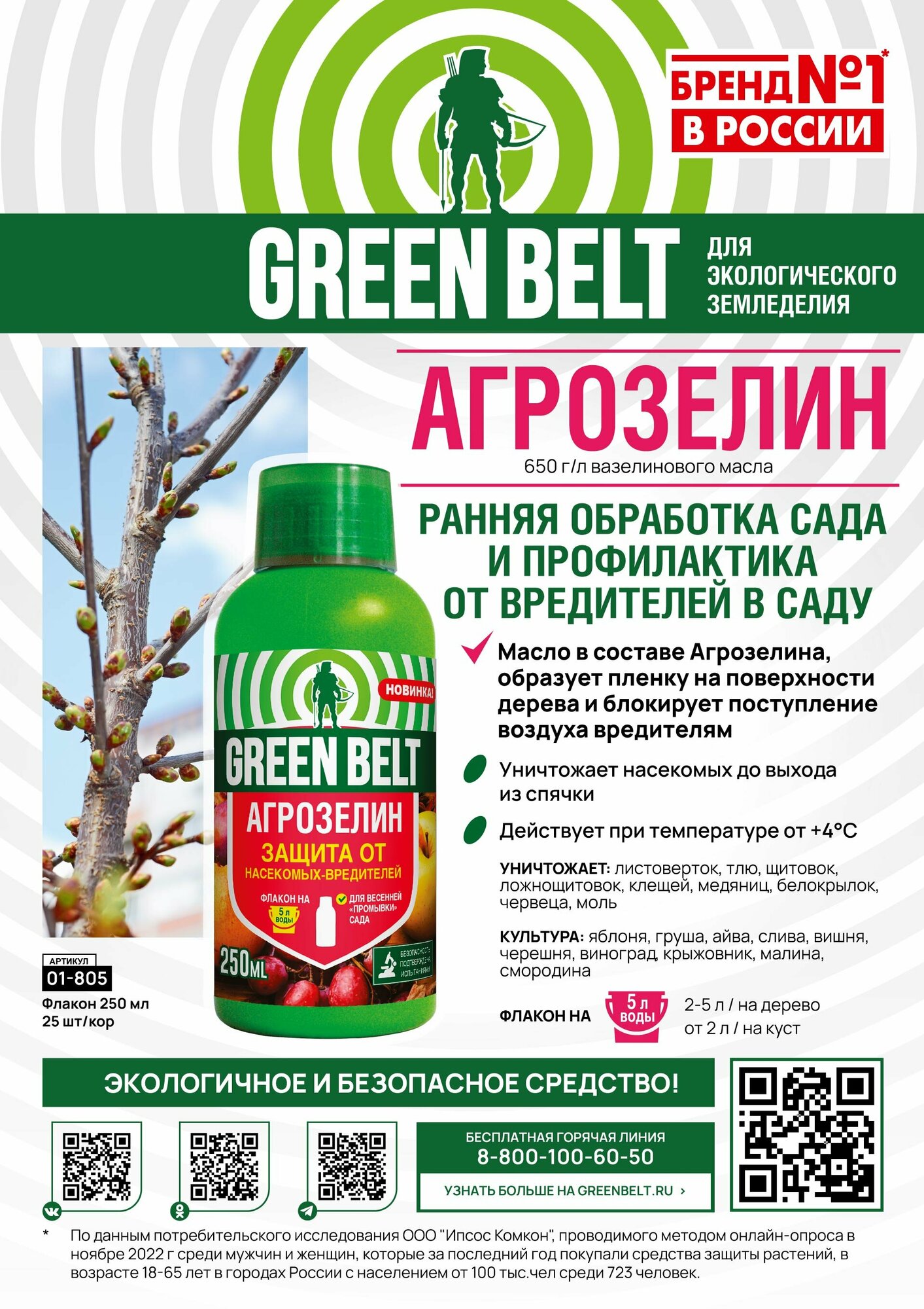 | Применение продукта | Средство для ранневесенней обработки плодовых, ягодных, декоративных культур и винограда от зимующих стадий вредителей. Подходит для экологического земледелия.• Борется с вредителями, зимующими в саду.• Действует при температуре от +4С.• Подходит для всего сада – деревьев и кустарников.• Позволяет уничтожить насекомых до выхода из спячки. |