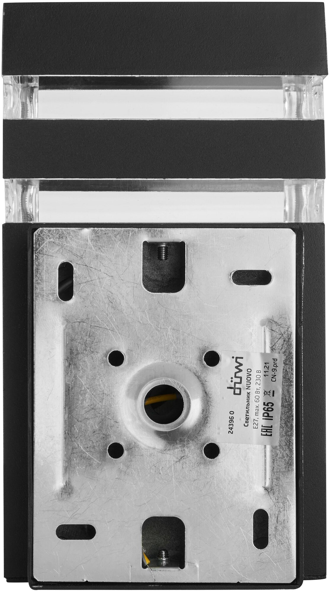 Стильный накладной светильник Nuovo duwi идеально подходит для внутреннего акцентного освещения дома, офиса, студии, уличного освещения на дачном участке и архитектурной подсветки загородного дома. Он устойчив к морозам и не подвержен коррозии. Степень защиты IP65 делает настенный светильник устойчивым к влаге и брызгам дождя. Корпус светильника выполнен из высококачественного литого алюминия и не боится пыли и сырости. Благодаря высокому качеству и влагозащитным свойствам, светодиодный светильник имеет длительный срок службы и совершенно незаменим для наружного освещения дома. Но многие приобретают влагозащитный светильник также для декоративной подсветки комнат, коридоров, гостиной, спальни, ванной комнаты и других помещений. За счет универсального дизайна и лаконичной формы, светильник будет гармонично смотреться в вашем доме и поможет расставить световые акценты.Выбирайте свой идеальный светильник в нашем магазине REV Ritter GmbH!Цоколь: Е27. Мощность на 1 цоколь: до 60 Вт. Степень защиты: IP65. Материал: литой алюминий/стекло. Размер: 110х105х200 мм. Цвет корпуса: черный.