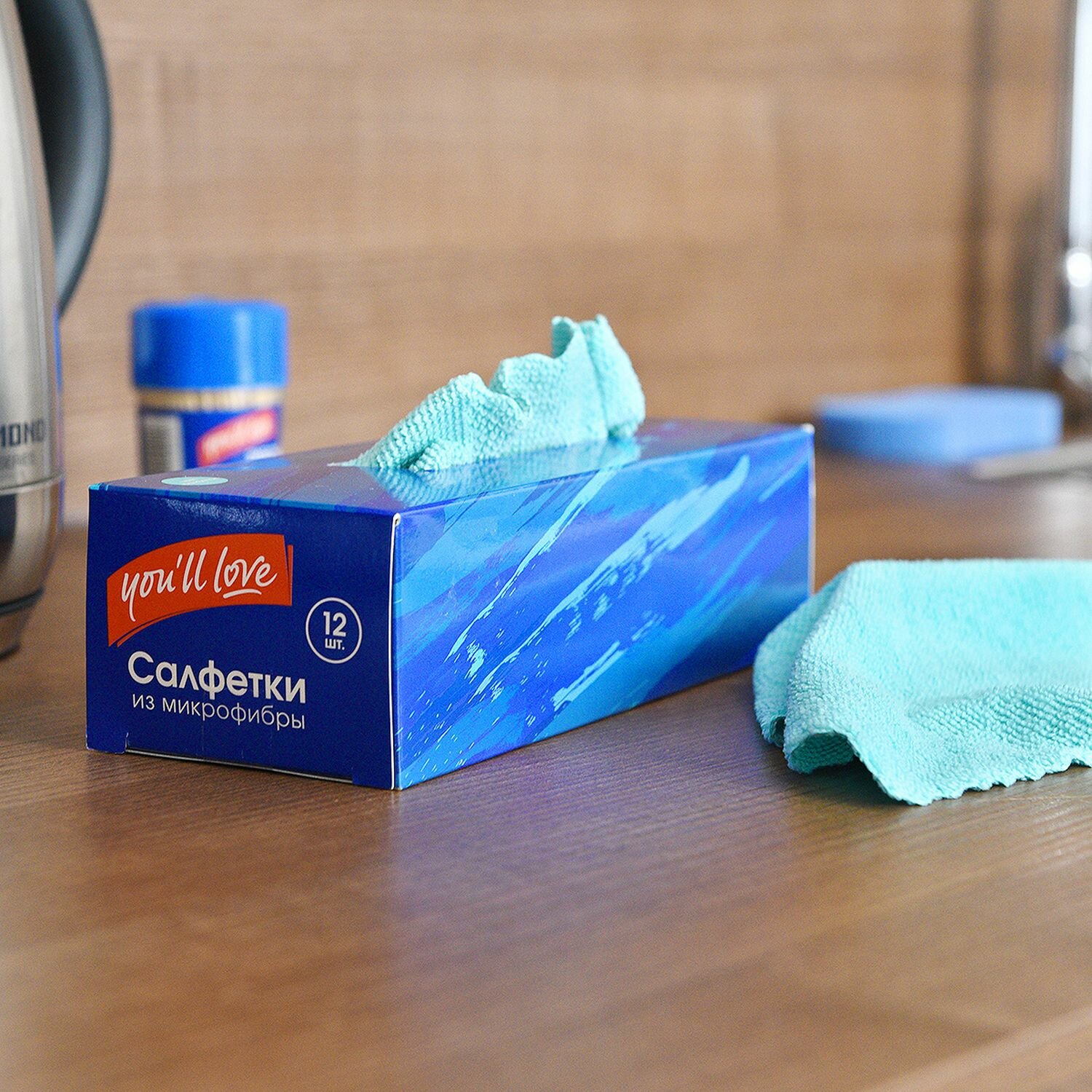 **Салфетки You ll Love** — эффективное средство в борьбе с загрязнениями, жиром, масляными разводами, пятнами на любых поверхностях. Салфетки предназначены для сухой, влажной уборки и полировки. Они выполнены из микрофибры, в состав которой входят полиэстер и полиамид. Материал отличается воздухопроницаемостью, хорошо впитывает влагу благодаря зазорам между волокнами и повышенной плотности. Текстура «квадраты» обеспечивает быстрое высыхание изделия после уборки или стирки.