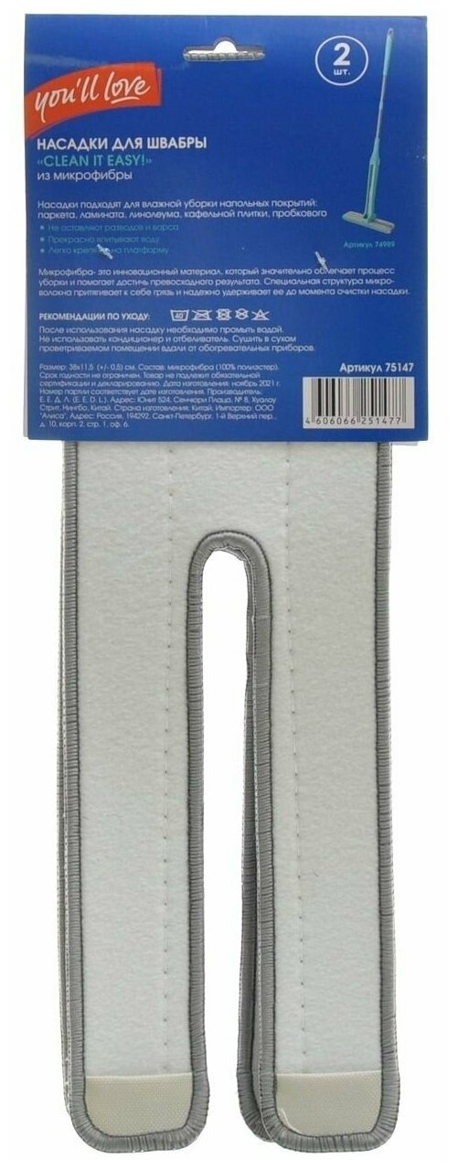 **Насадка для швабры You ll Love Do it easy** предназначена для влажной и сухой уборки напольных покрытий любого типа, в том числе и чувствительных к влаге. Позволяет значительно снизить количество используемых средств бытовой химии, эффективно моет, не оставляя разводов и пятен. Крепится к швабре на петли.