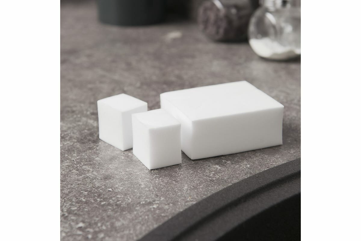 - губка сделана из меламина высокой плотности (16 г/м³), что обеспечивает экономичный расход и более эффективное очищение, потому что больше вспененных волокон вбирают в себя больше грязи;