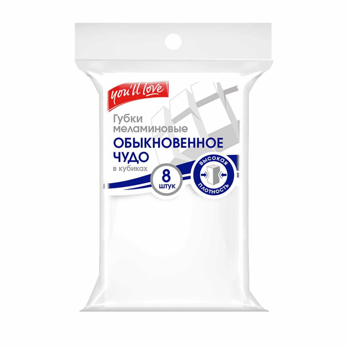 **Губка меламиновая You ll Love** предназначена для удаления с поверхностей загрязнений, отпечатков пальцев, капель жира. Бережно и эффективно удаляет даже стойкие загрязнения с поверхностей без использования моющих средств. В комплекте поставляются 8 кубиков.