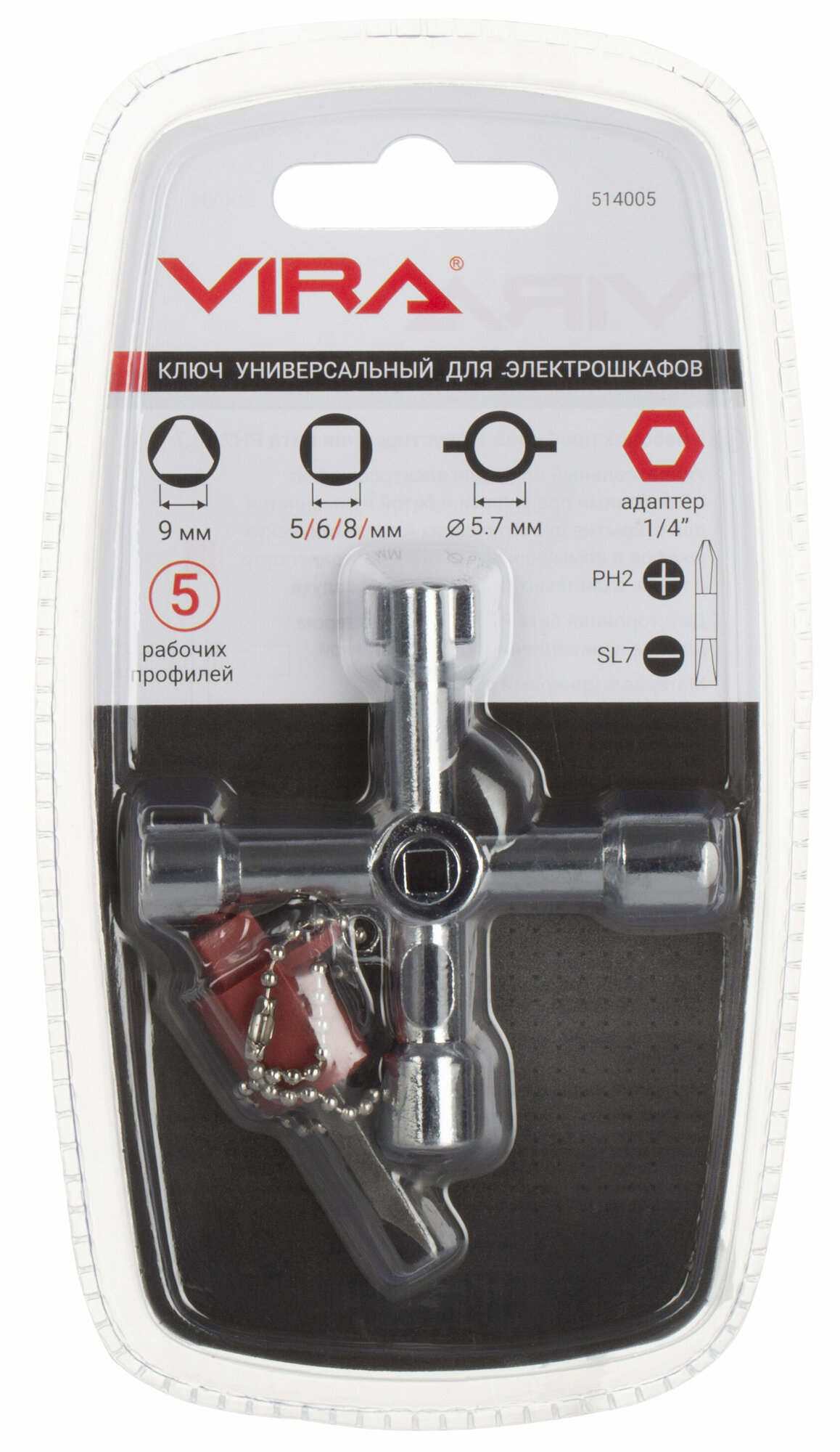 Ключ для электрошкафов Vira 5 профилей и бита None