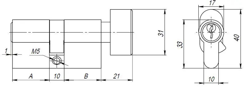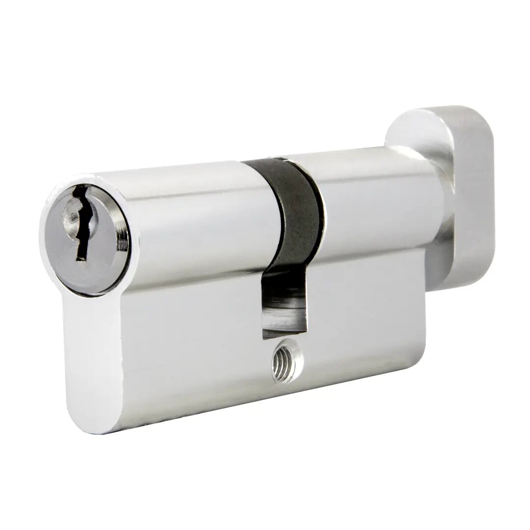 **Цилиндр /70** относится к типу ключ-вертушка. Он представляет собой двустороннее устройство, которое с внешней стороны запирается при помощи ключа, а с внутренней — вертушки. Основным материалом, из которого выполнен механизм, служит алюминий. Благодаря этому элемент отличается малым весом и высокой устойчивостью к коррозии.